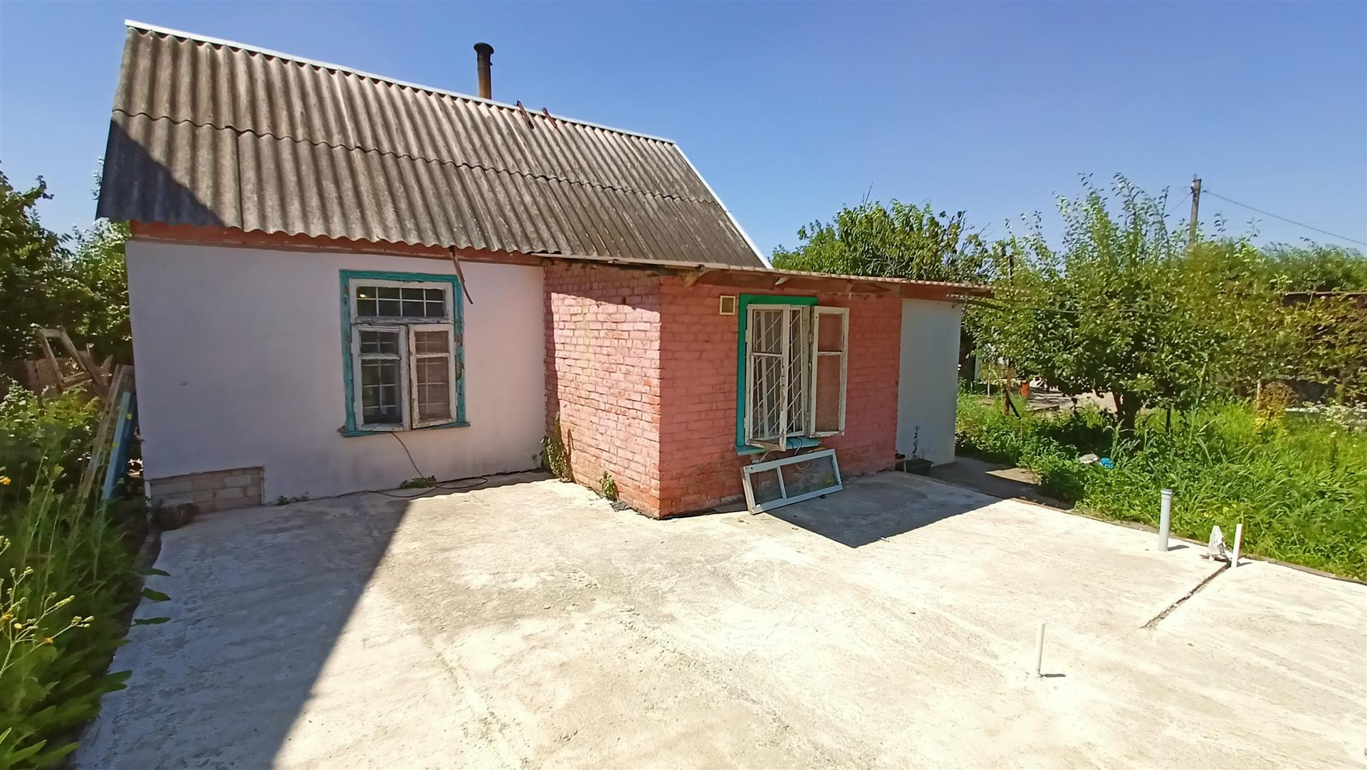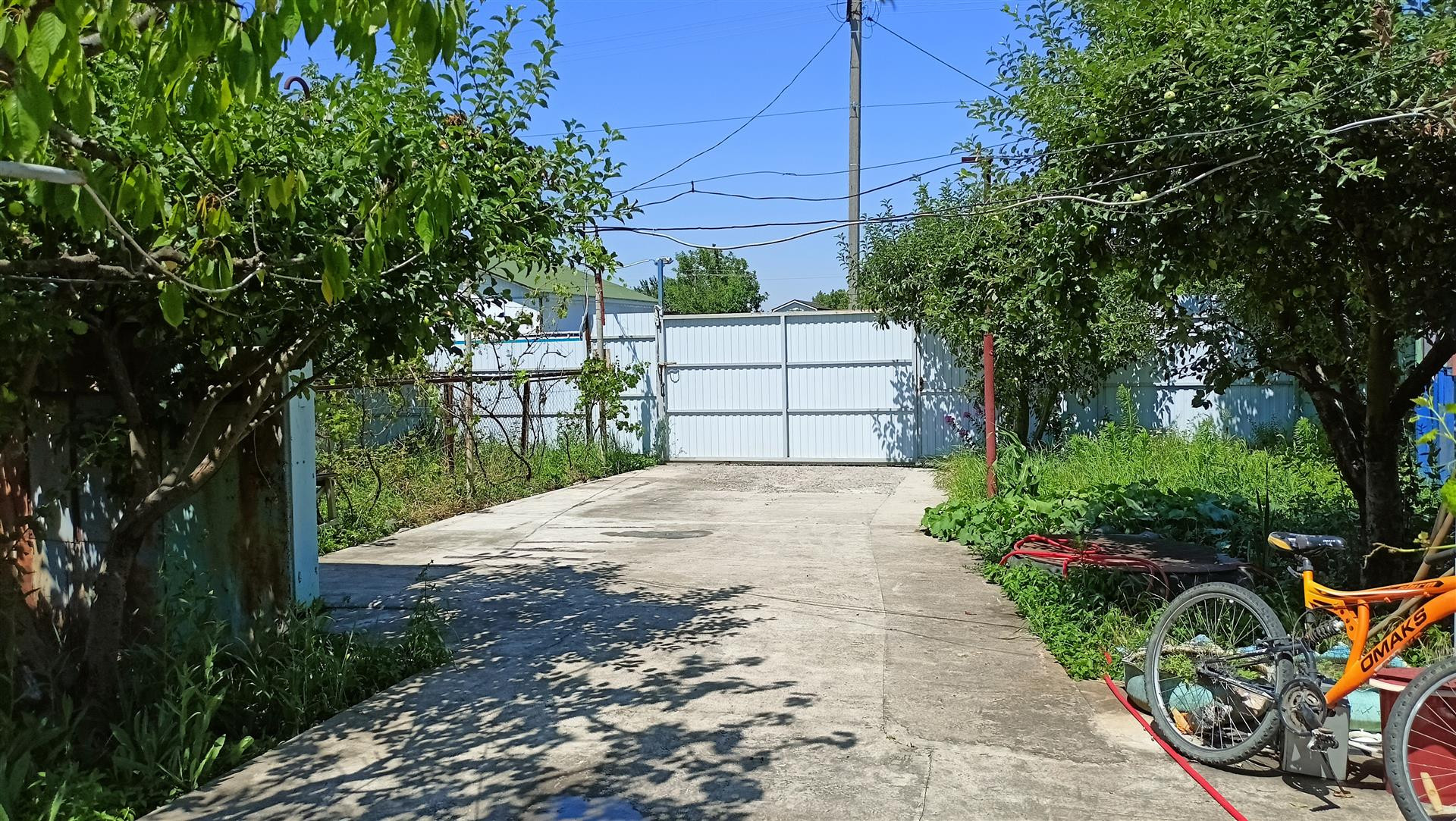 Участок 6 соток. Двор забетонирован. Откатные ворота. Во дворе большой сарай. Растёт много плодовых деревьев, виноград. Детская площадка, турник. Рядом все соседи живут на постоянной основе. К дому ведёт асфальтированная дорога.
