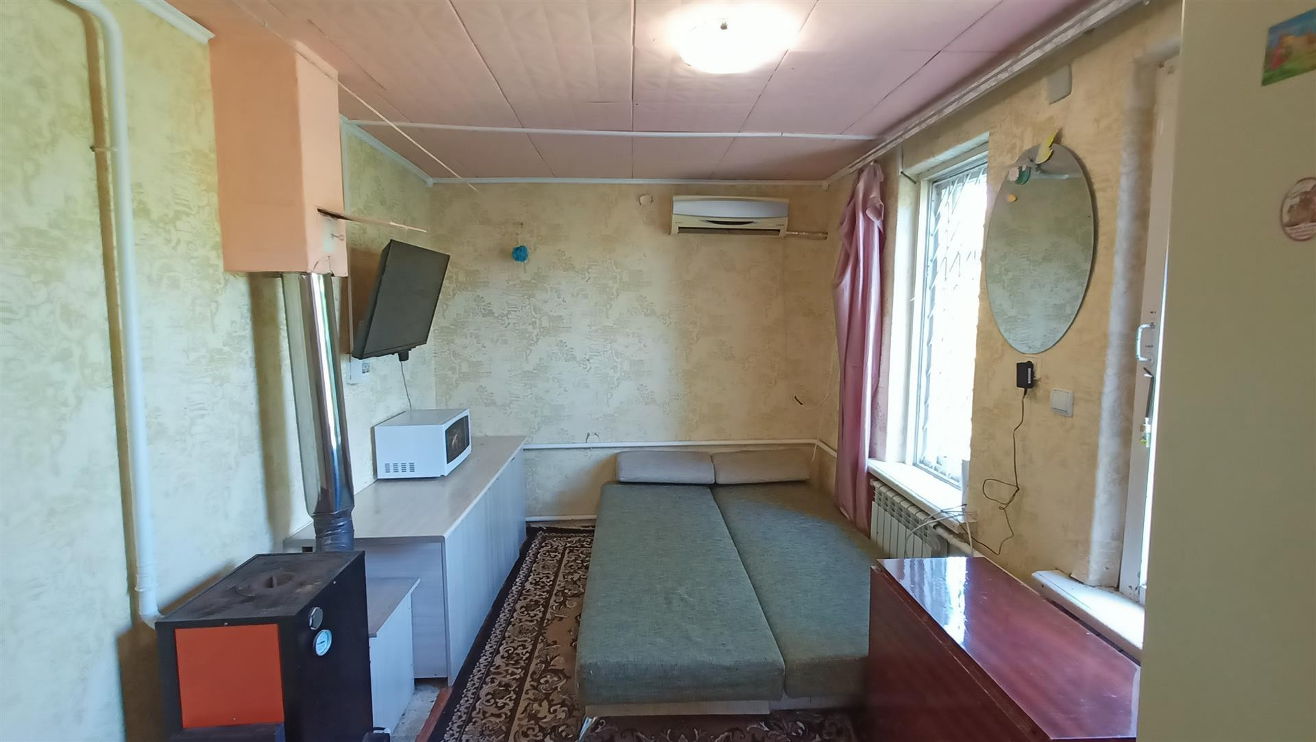 Дом кирпичный. Две комнаты 11.4 м3 и 10.7 м3, кухня 4.9 м3, и коридор 2.7 м2. Состояние хорошее. Установлен хороший котёл, можно отапливать электричеством и дровами (возле дома пристройка, полная дров). Установлены новые батареи, пластиковые трубы. В доме есть душевая. Подача тёплой воды через бойлер объёмом 100 литров. Установлено климатическое оборудование. При продаже остаётся всё, что есть на фото: мебель и бытовая техника. Закуплены пластиковые окна, пока в процессе замены.