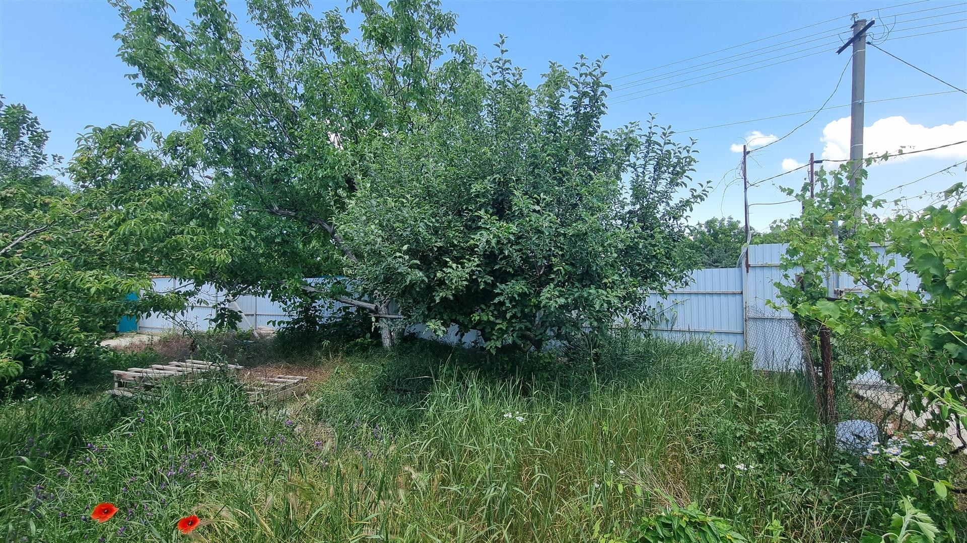 На участке плодоносящий сад. Яблоки, груши, персики, фундук и многое другое.