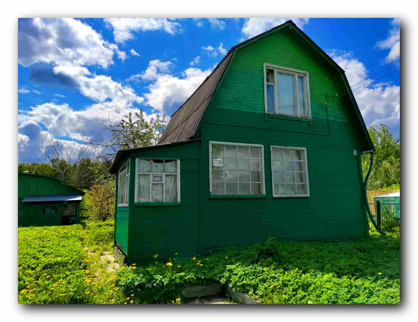 с крыльцом, есть еще один зимний дом-баня 4*5 с печкой и с баней, в бане отдельная печь, кухня и комната