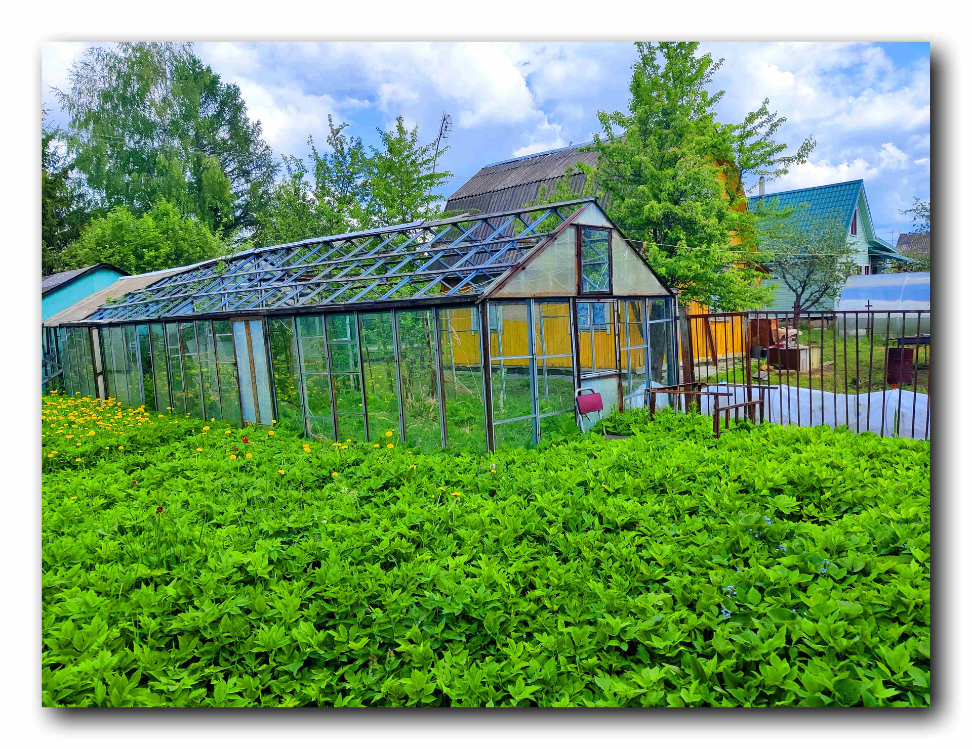 летний душ с большим вместительным баком,также на участке есть сарай,туалет,большая металлическая теплица,