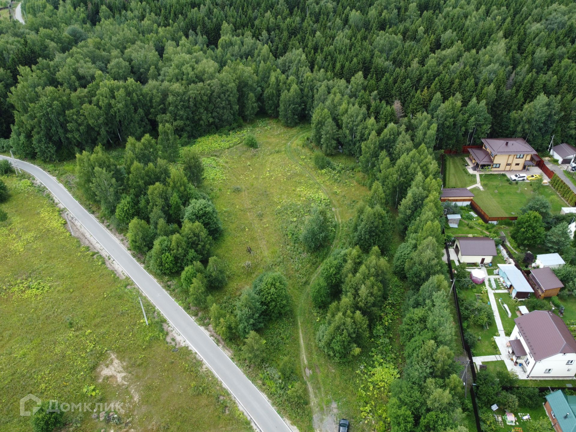 Участок прямоугольный, сухой, частично покрыт лесной растительностью и деревьями, которые можно использовать при планировке строительства своего уникального дома.