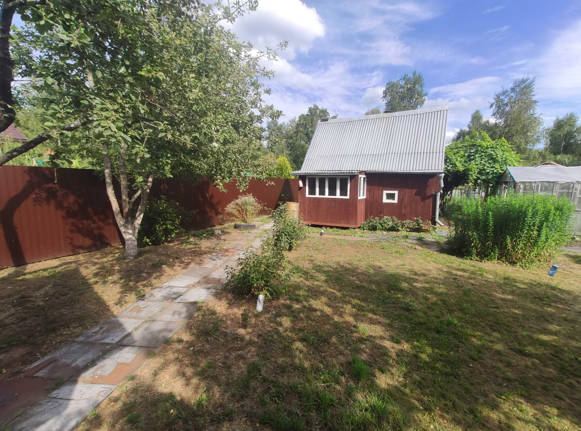 На участке есть свой колодец для полива (4 кольца), летний душ, детская площадка с качелями, местом для гамака, горкой и песочницей. Перед домом парковочное место для двух автомобилей, выложенное плиткой.