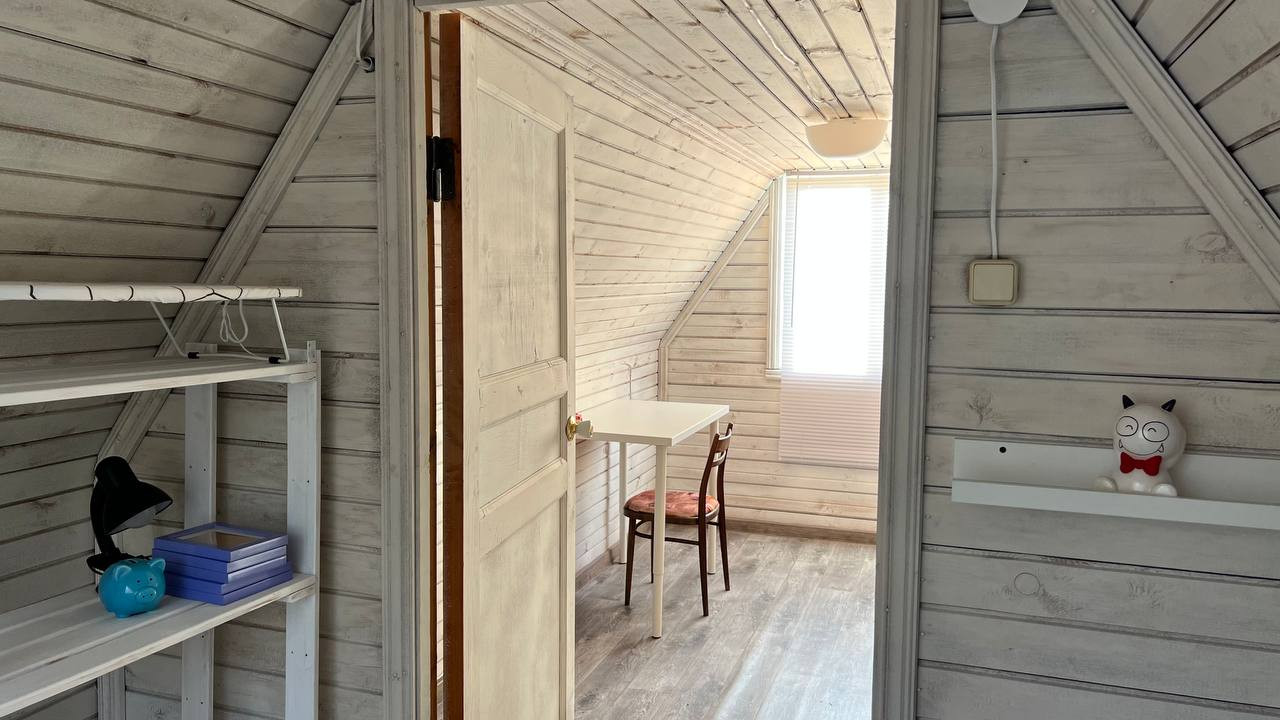 В доме дровяная печь, 2 спальни и просторная кухня на первом и 1 спальня на втором этаже.