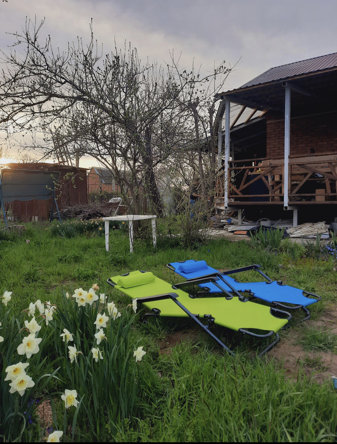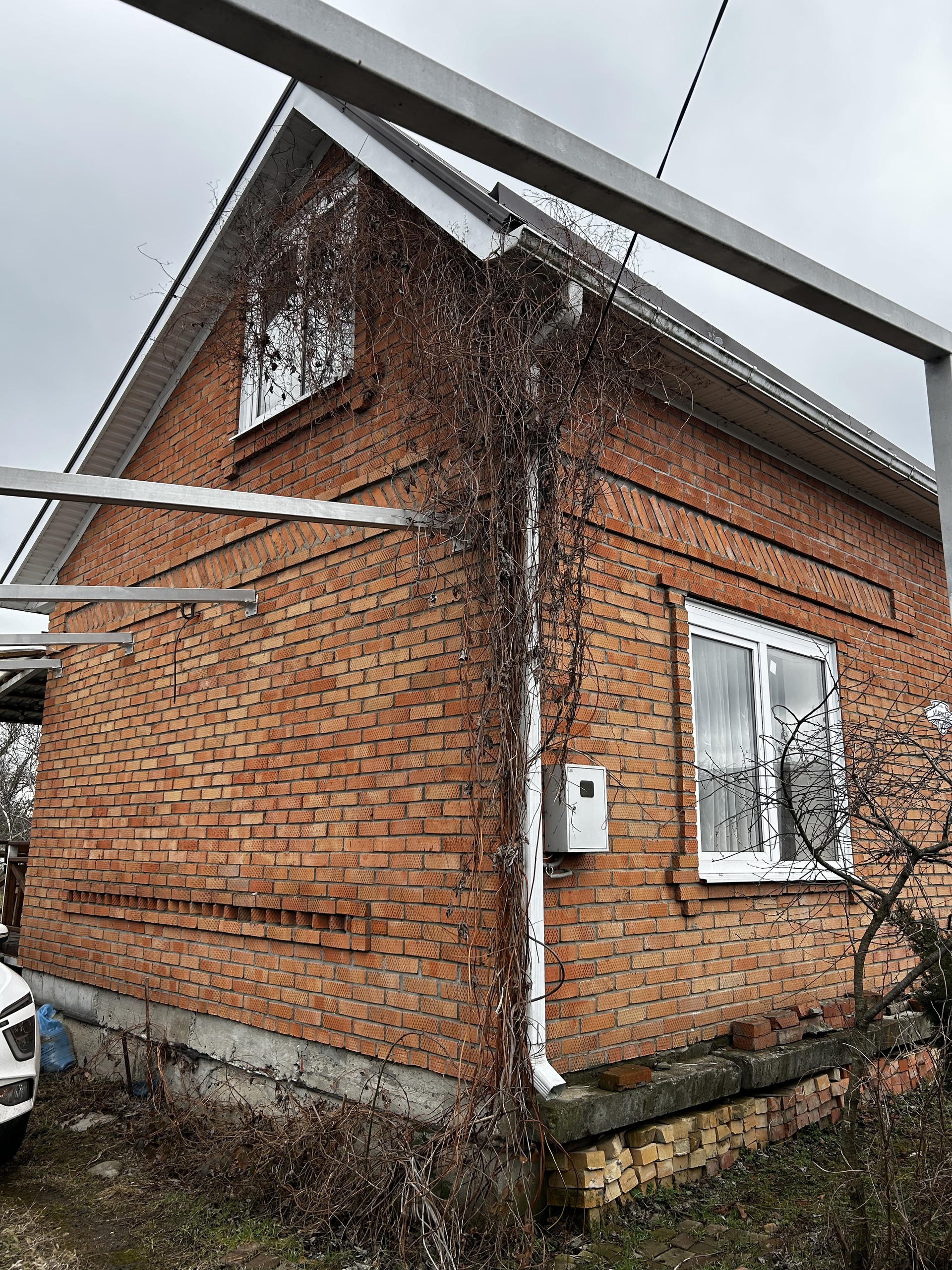Забор металл, въезд на 2 машины, на парковке уже стоят столбы под навес.