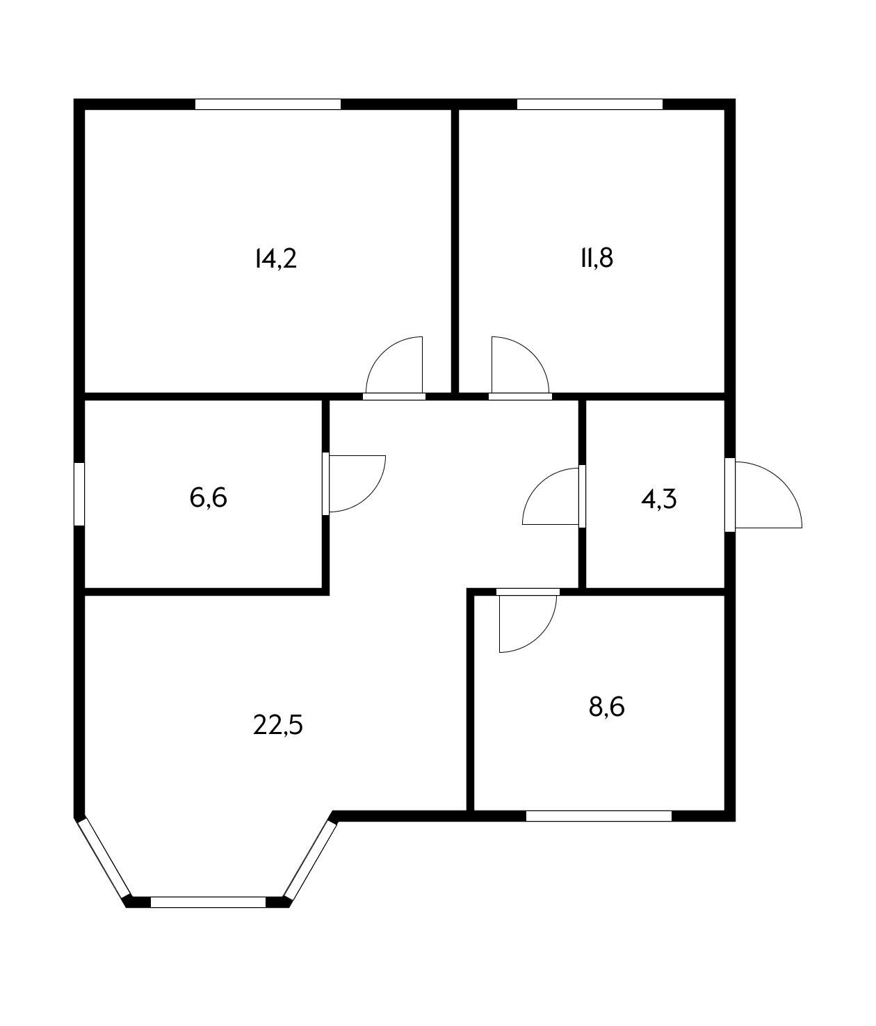 Планировка включает в себя 3 спальни, большую кухню-столовую, прихожую, санузел.