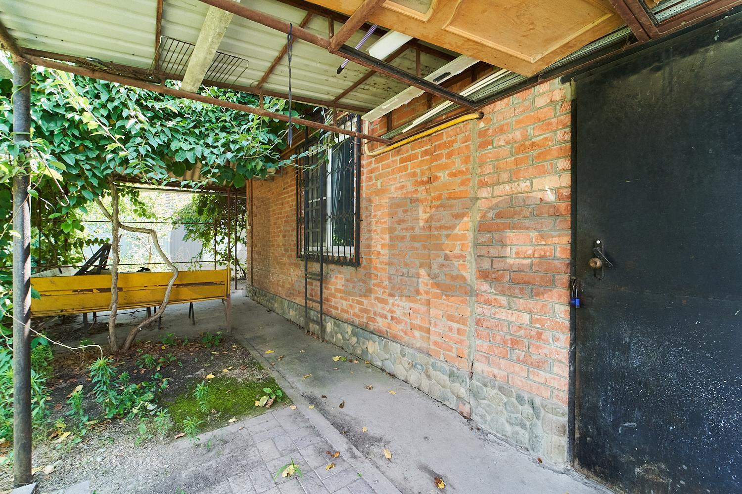 Расположен на участке четыре сотки. Во дворе много зелёных насаждений.