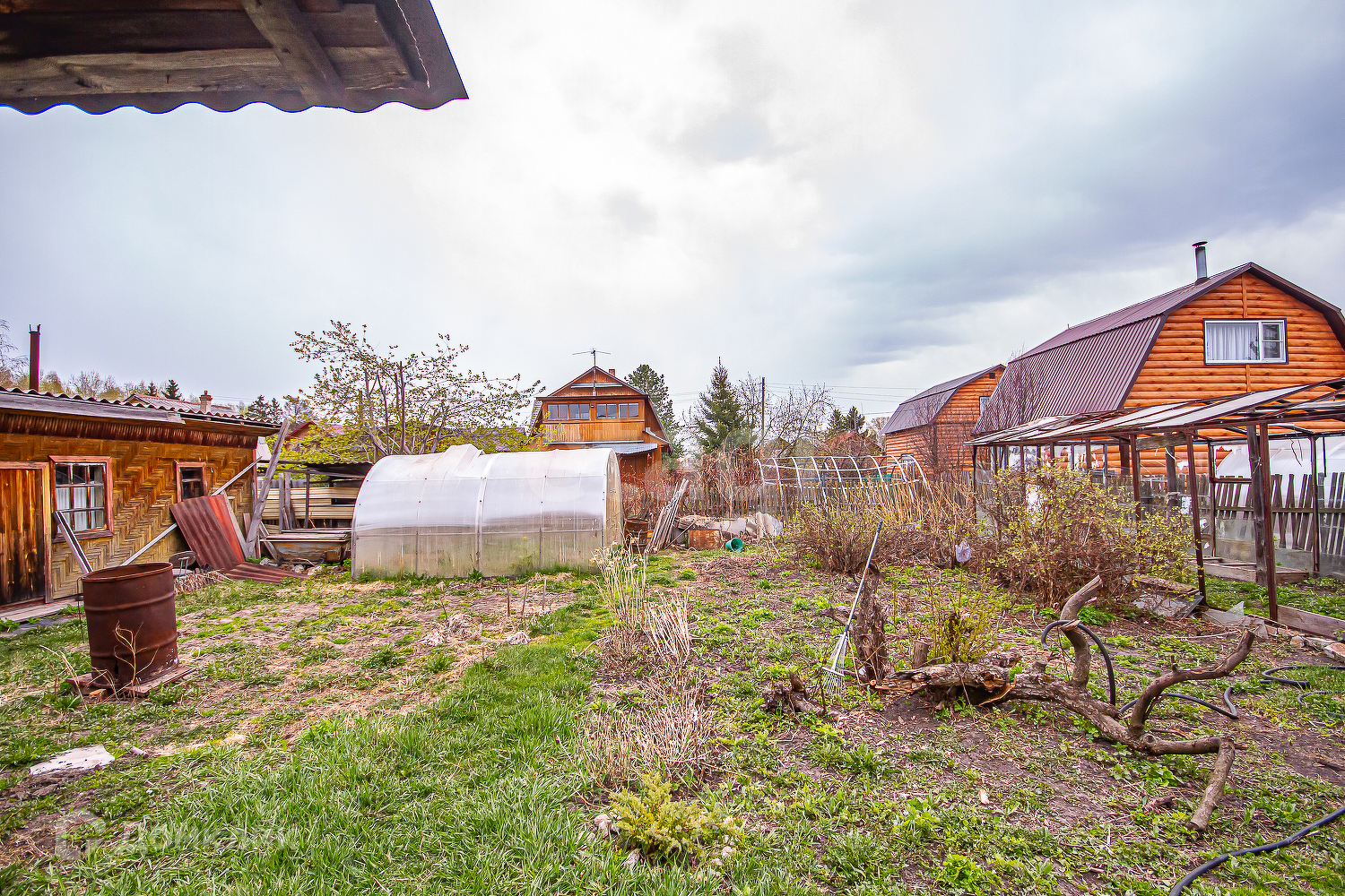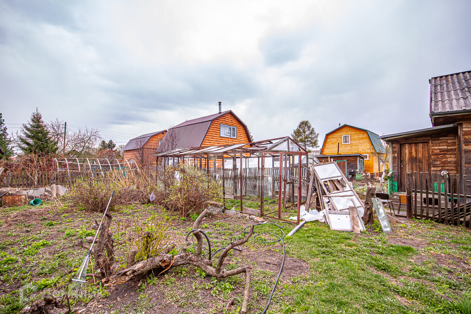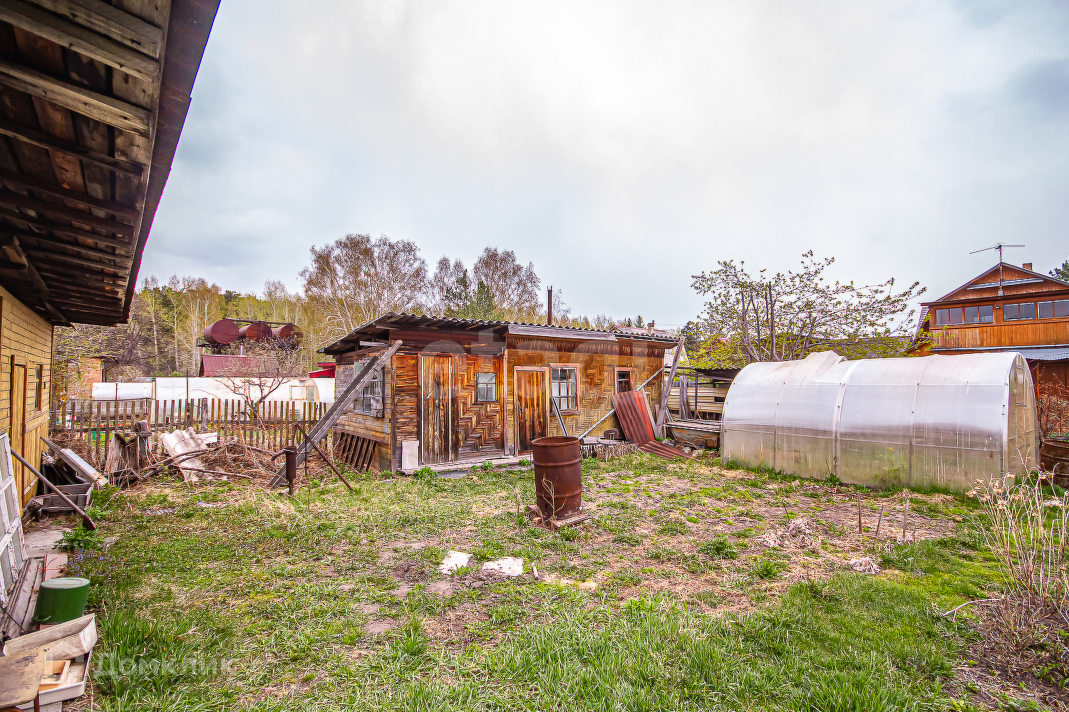Имеются банька, гараж, 2 теплицы, хозпостройки.