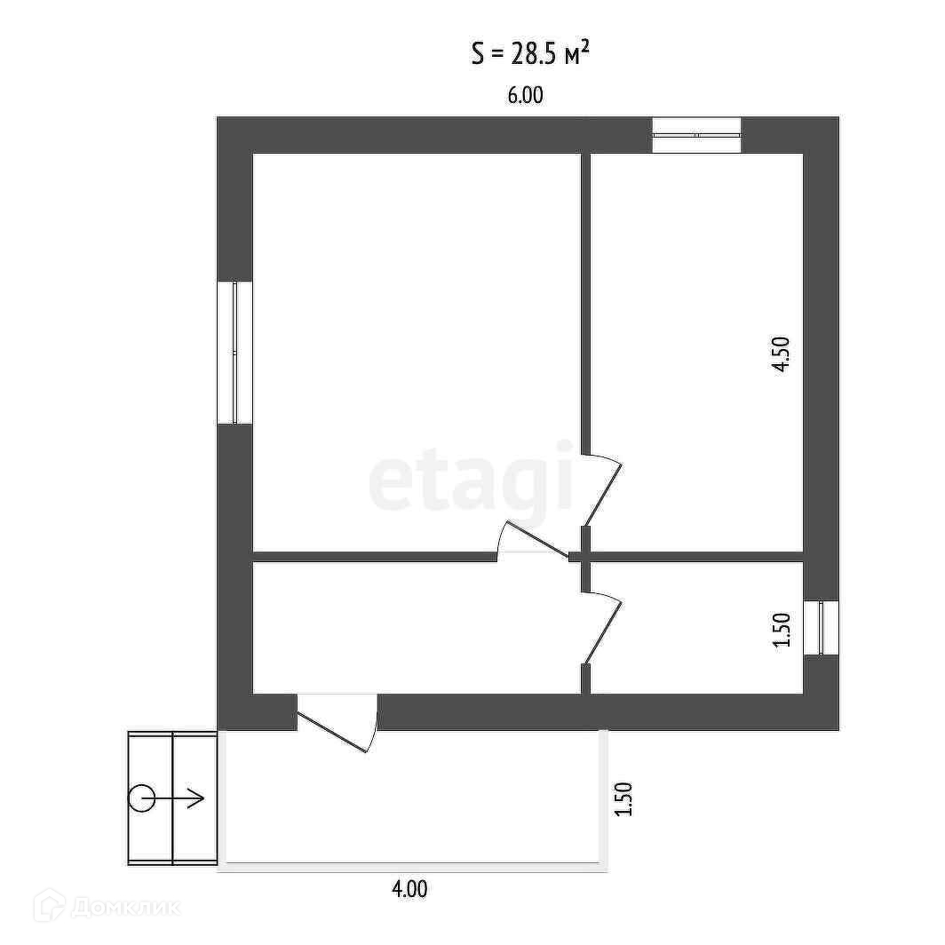 Общая площадь 28.5 м2