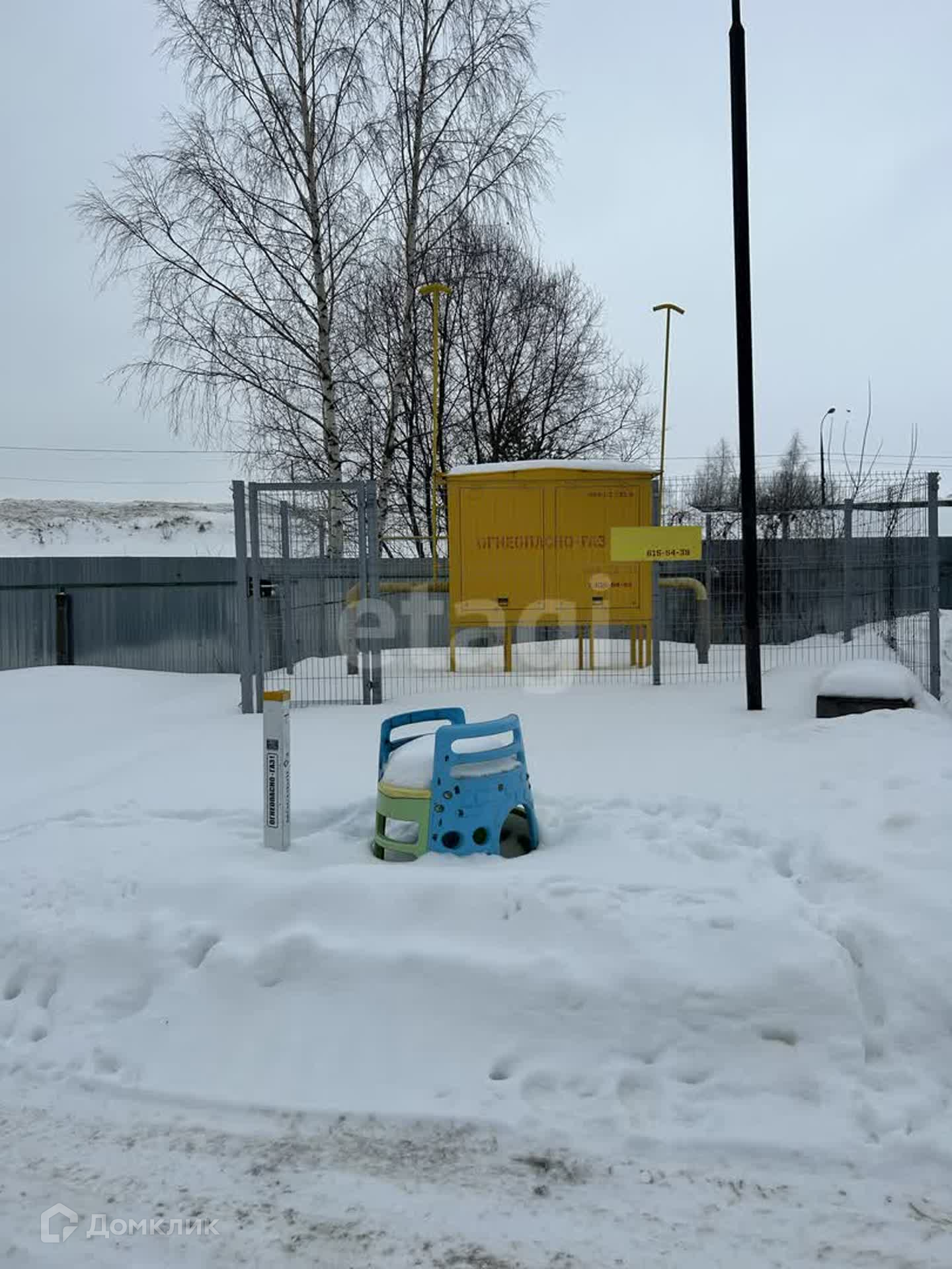 - забор с одной стороны из металлопрофиля ( есть калитка и ворота для въезда машин ), с остальных сторон забор из сетки рабицы