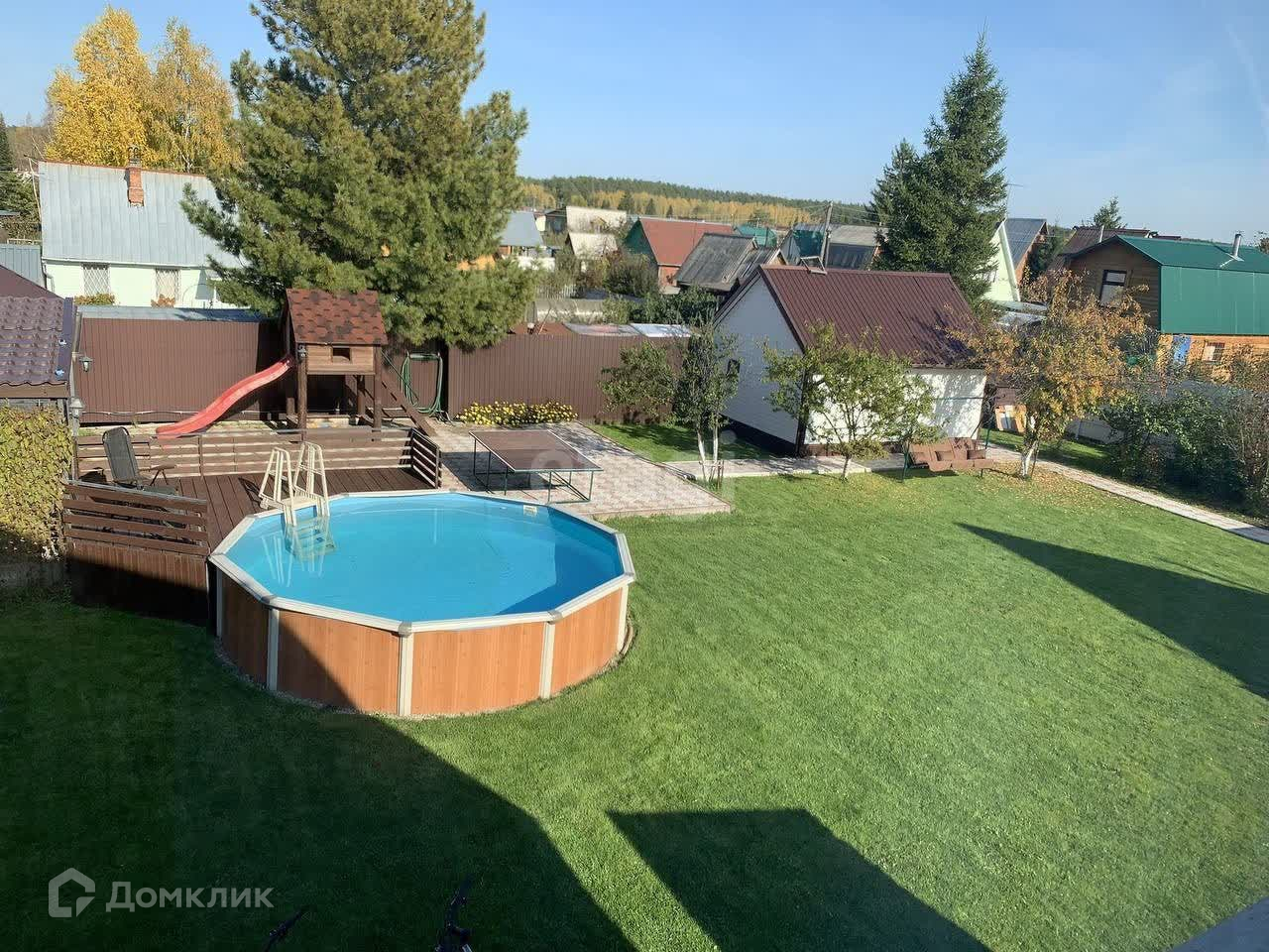 - Детская зона с домиком, горкой и песочницей;