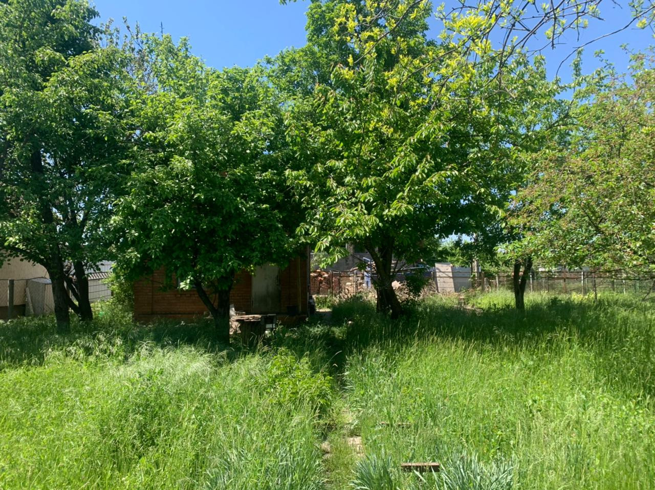 Продается дачный участок 4 сот. земли на котором стоит небольшой кирпичный дом 35 кв.м. в ст Механизатор. Участок ровной формы,  По коммуникациям: вода- скважина 25 м глубиной, свет -15 кВт, газ- по меже.