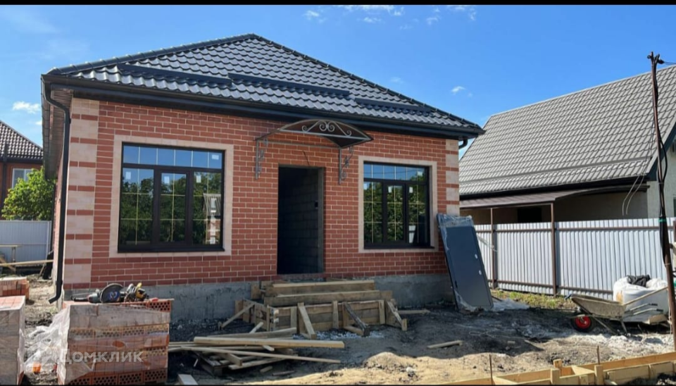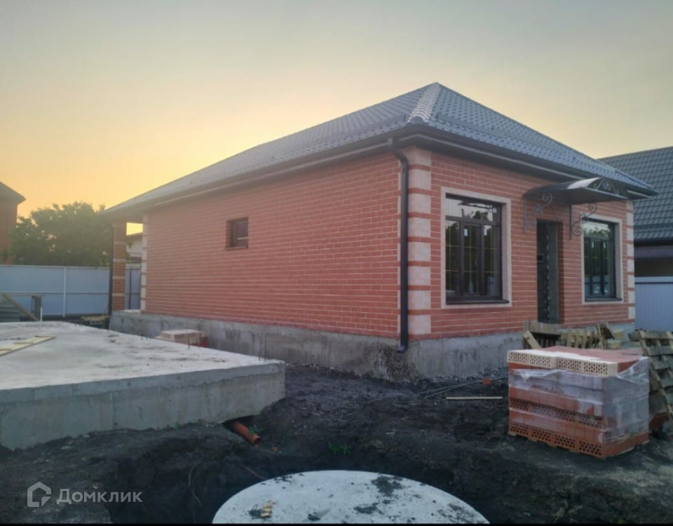 Ростовское шоссе город Краснодар, Прикубанский округ. Дом 90 м +20 М терраса: 3 спальни, кухня гостиная, санузел, коридор, терраса. Земли 3 сотки. Откатные ворота с пультом, отмостка, парковка выложена брусчаткой. Коммуникации: электричество, септик, скважина.Газ по меже. Отделка предчистовая, электроразводка, радиаторы отопления, стяжка пола, котел. Цена за наличку 4 900 000, в ипотеку