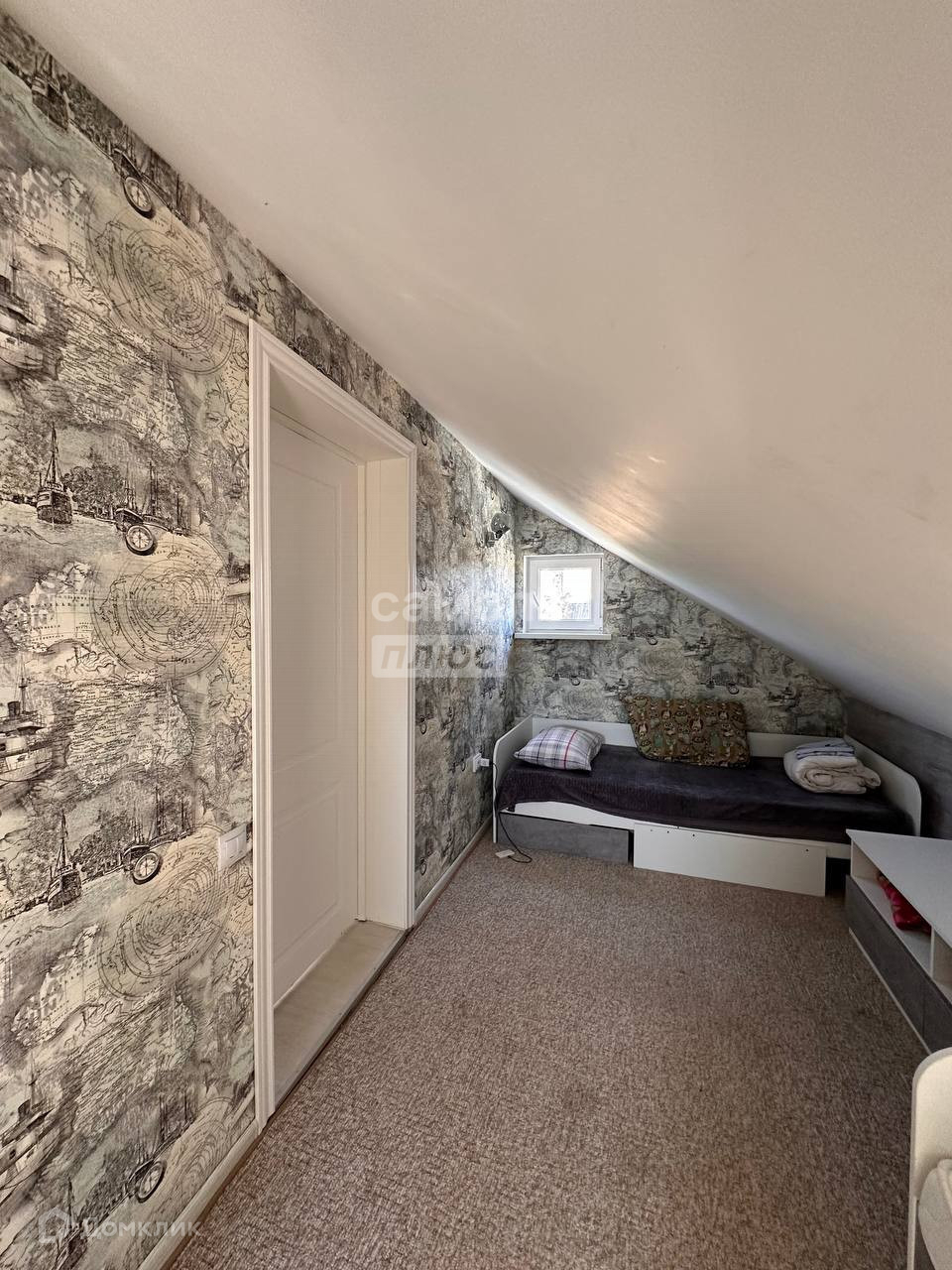2 этаж: изолированная уютная спальня с большой двухспальной кроватью и ЖК-плазмой. Детская комната с 3-мя кроватями.