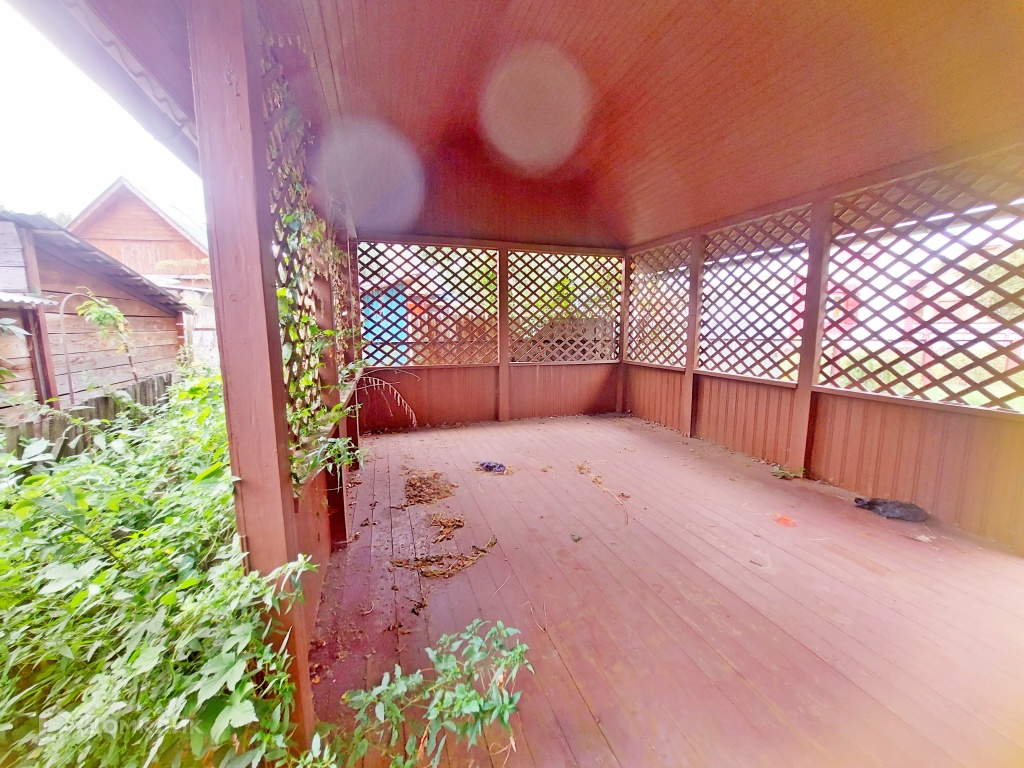 Участок 6 сот ровный, сухой. По периметру огорожен забором (из профлиста и сетки). На участке построен капитальный просторный банный комплекс с террасой и двумя большими комнатами. Вся постройка на заливном фундаменте. Баня из неоцилиндрованного бревна, остальная часть щитовая. Внутренняя отделка из блок хауса.