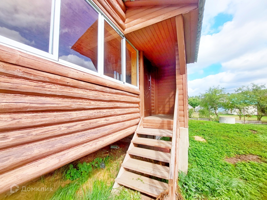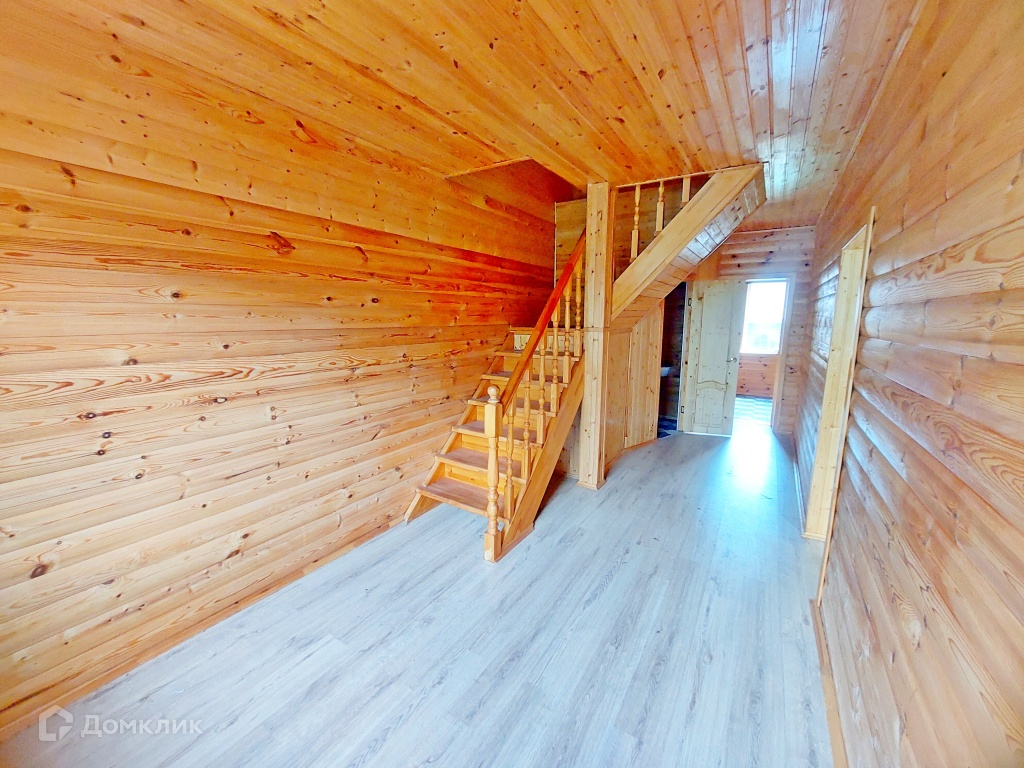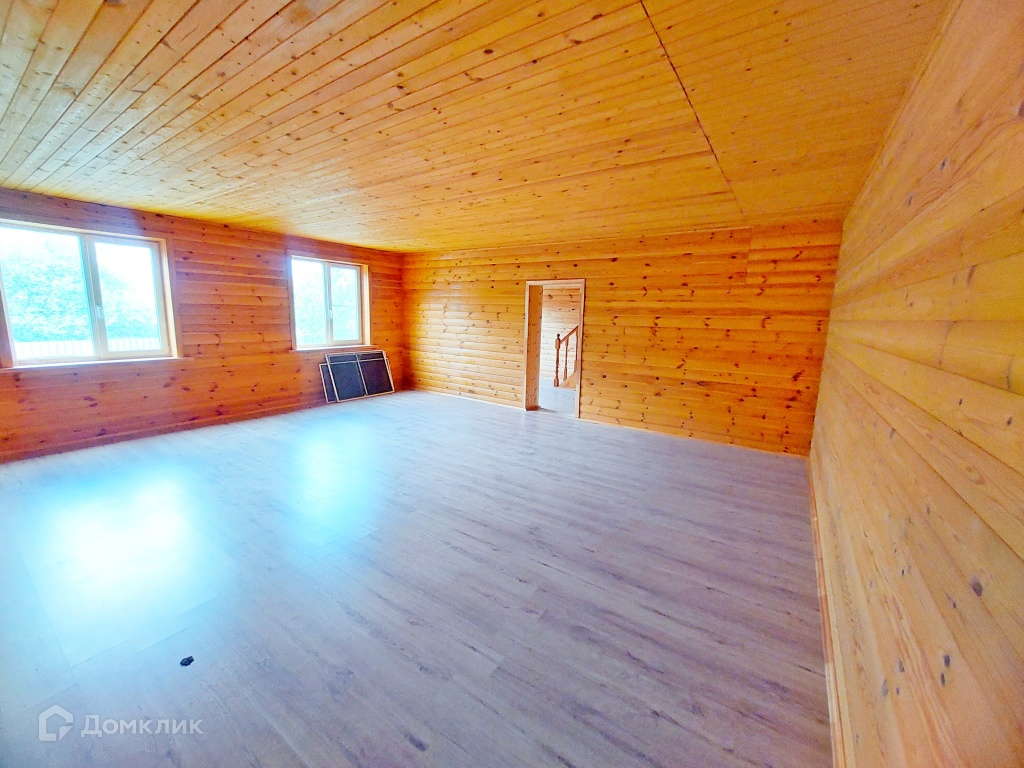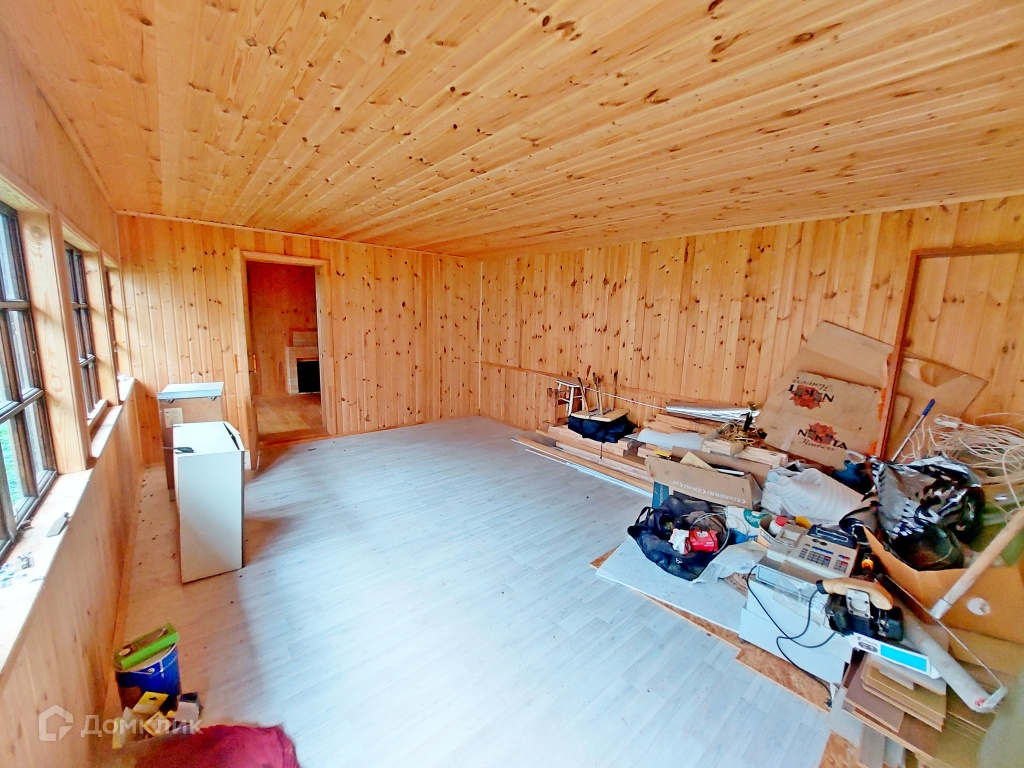 Дом так же построен на заливном фундаменте глубиной 1,8м + бетонные блоки 1,8м . 1 этаж из неоцилиндрованного бревна, 2 этаж щитовой. Стены и полы утеплены, внутренняя отделка - блок хаус. Крыша покрыта металлочерепицей высокого качества, так же с утеплением (10см). Во всём доме установлены качественные 2-х камерные стеклопакеты фирмы Kaleva.