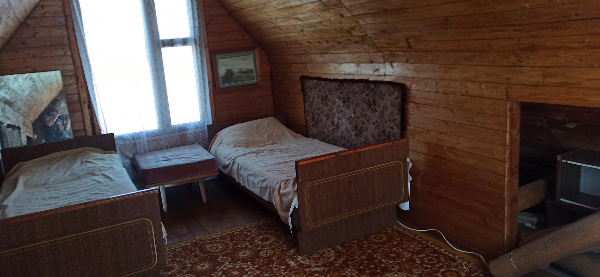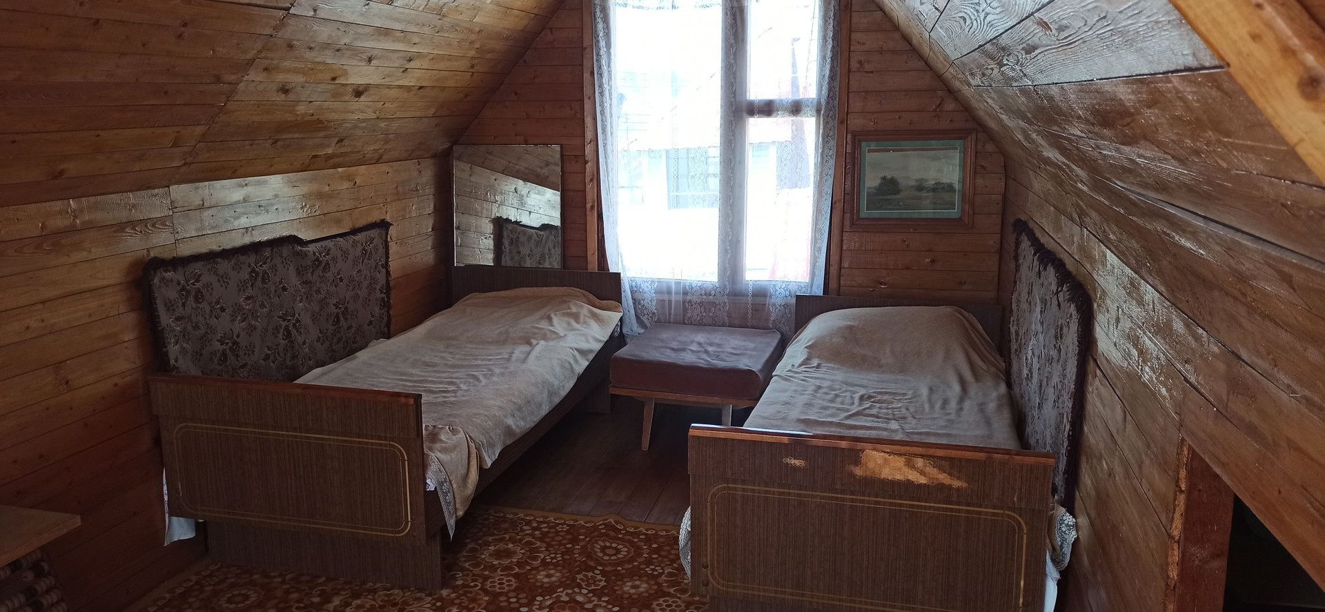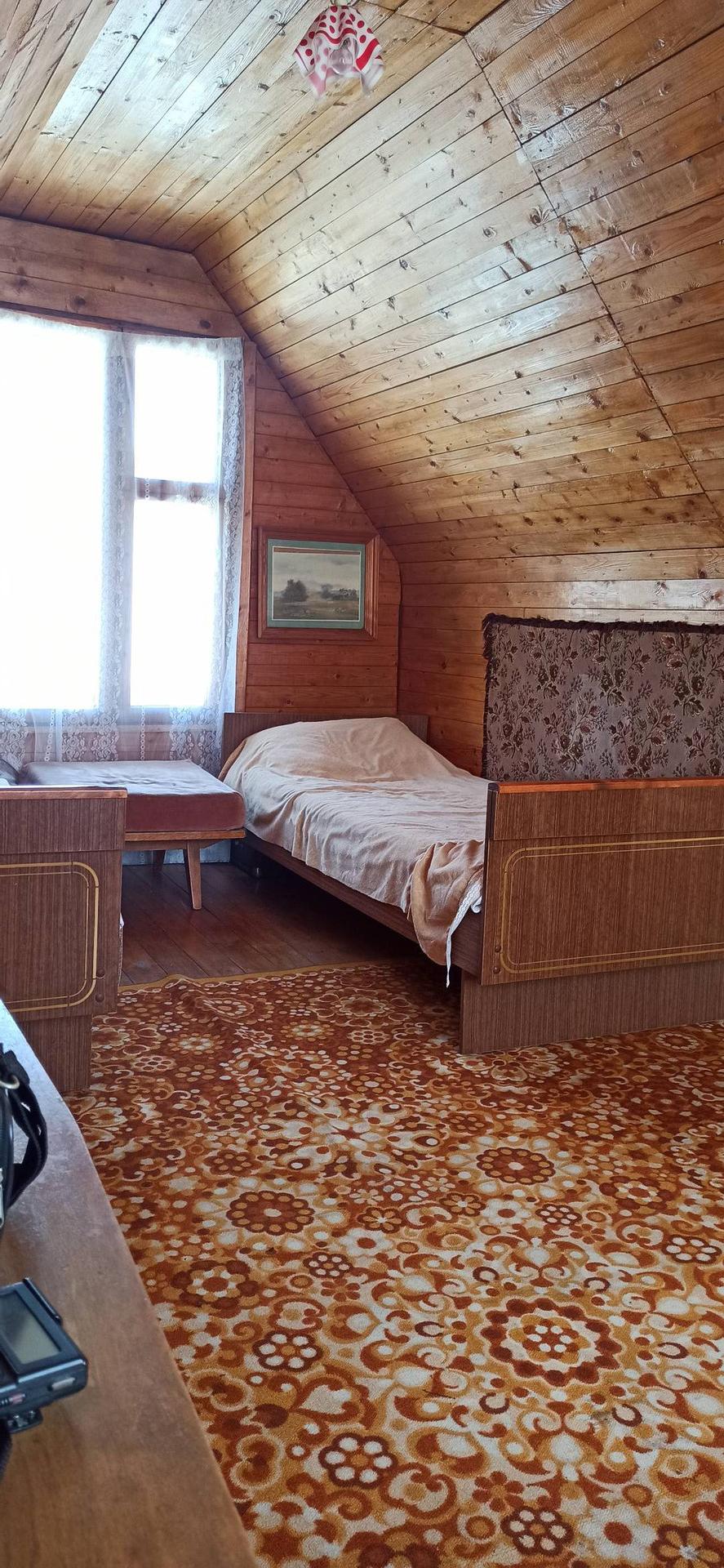 1й этаж: столовая (веранда) 20м², спальня 17 м ², кабинет 7 м². Стены отделаны вагонкой. На 2м этаже спальня 17 м².