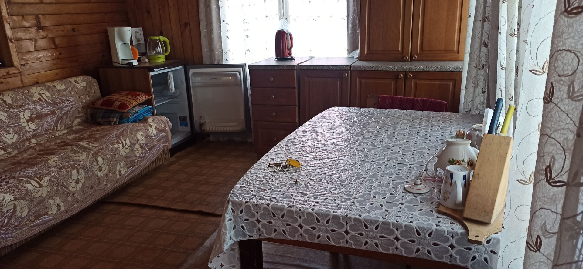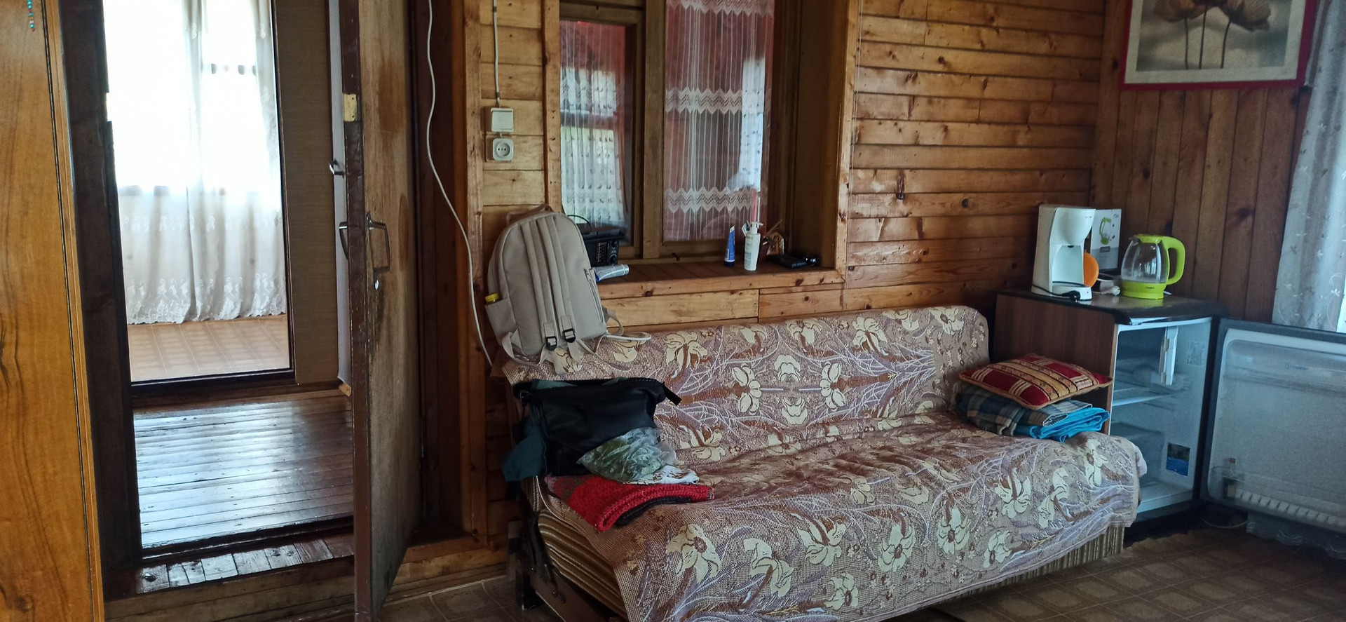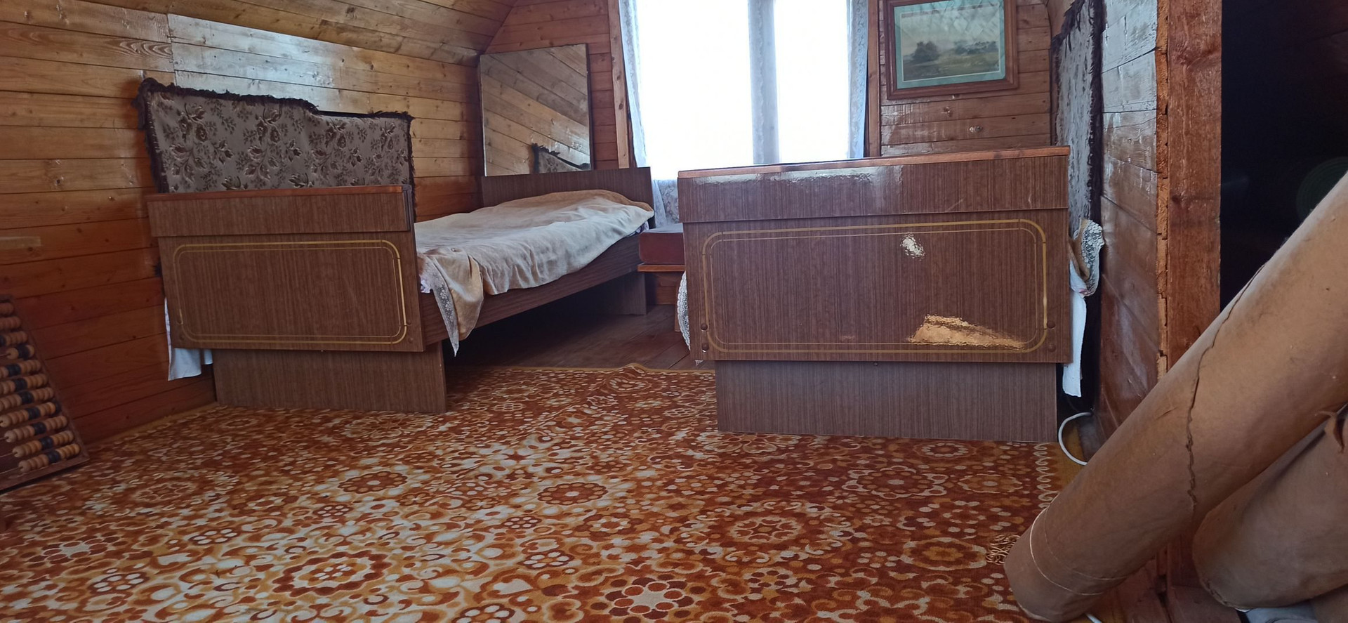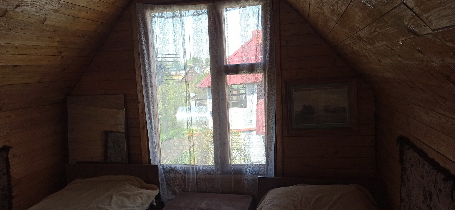 1й этаж: столовая (веранда) 20м², спальня 17 м ², кабинет 7 м². Стены отделаны вагонкой. На 2м этаже спальня 17 м².