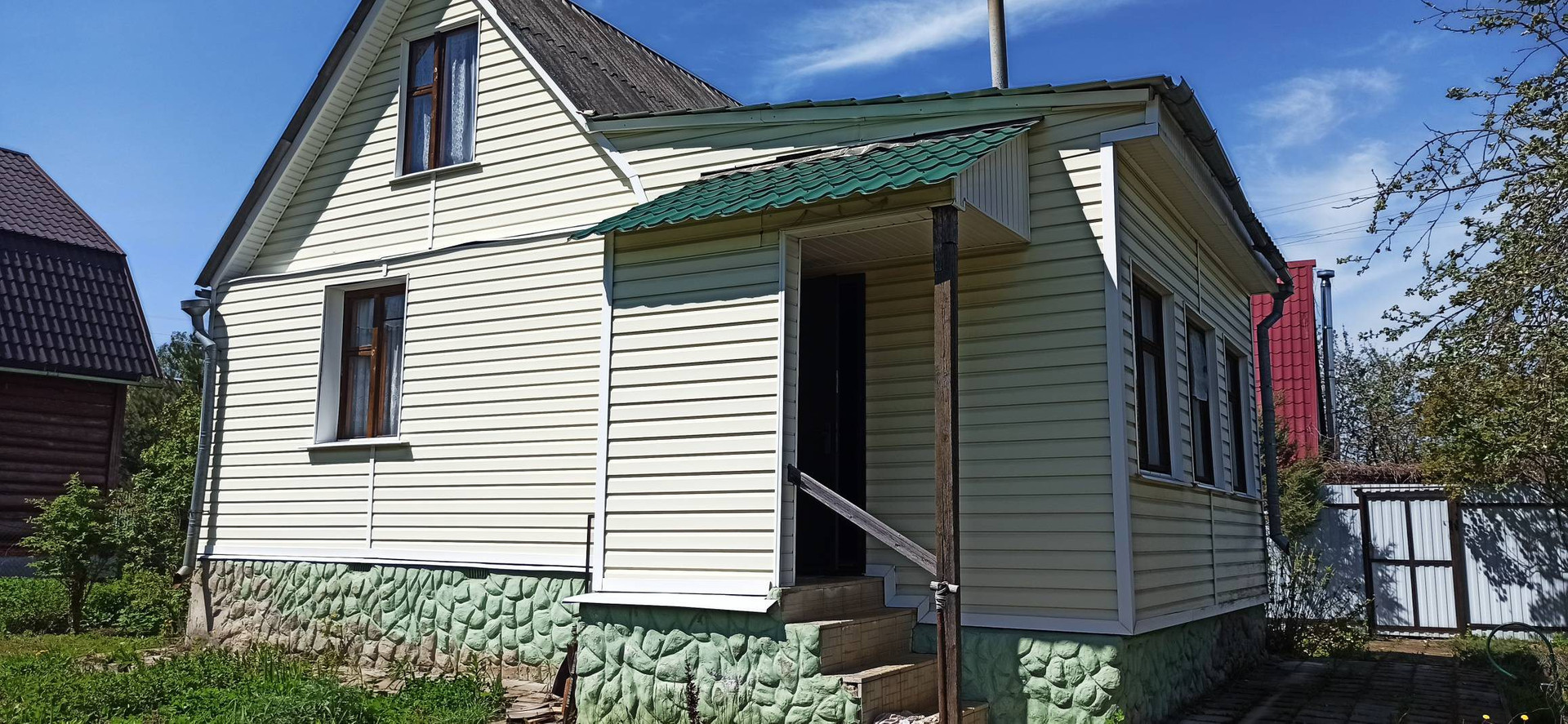 Дом 65 м² в с/т "Мелиоратор" на участке 6 соток. Щитовой дом обложен кирпичом, облицован вагонкой. Документы на участок оформлены, дом зарегистрирован как жилой, прописка возможна.