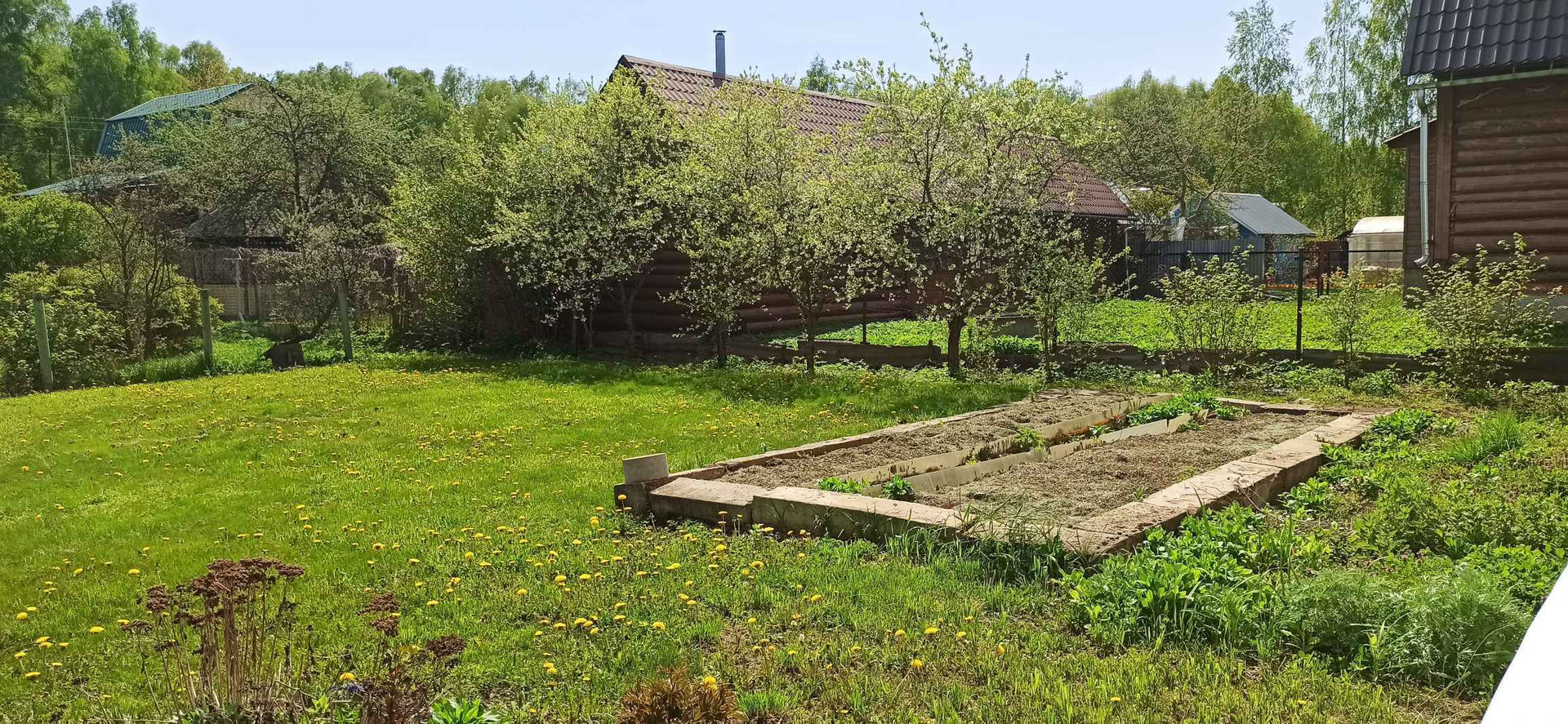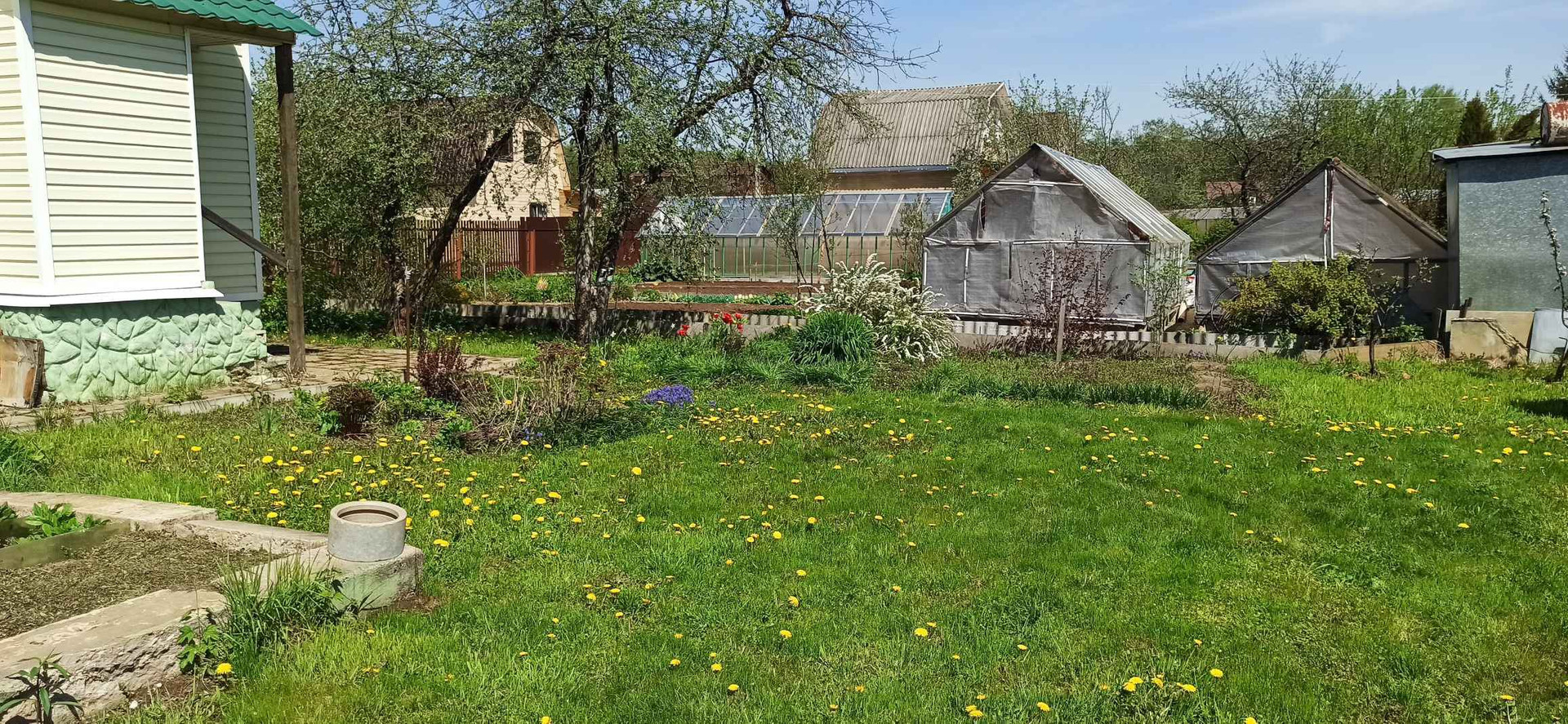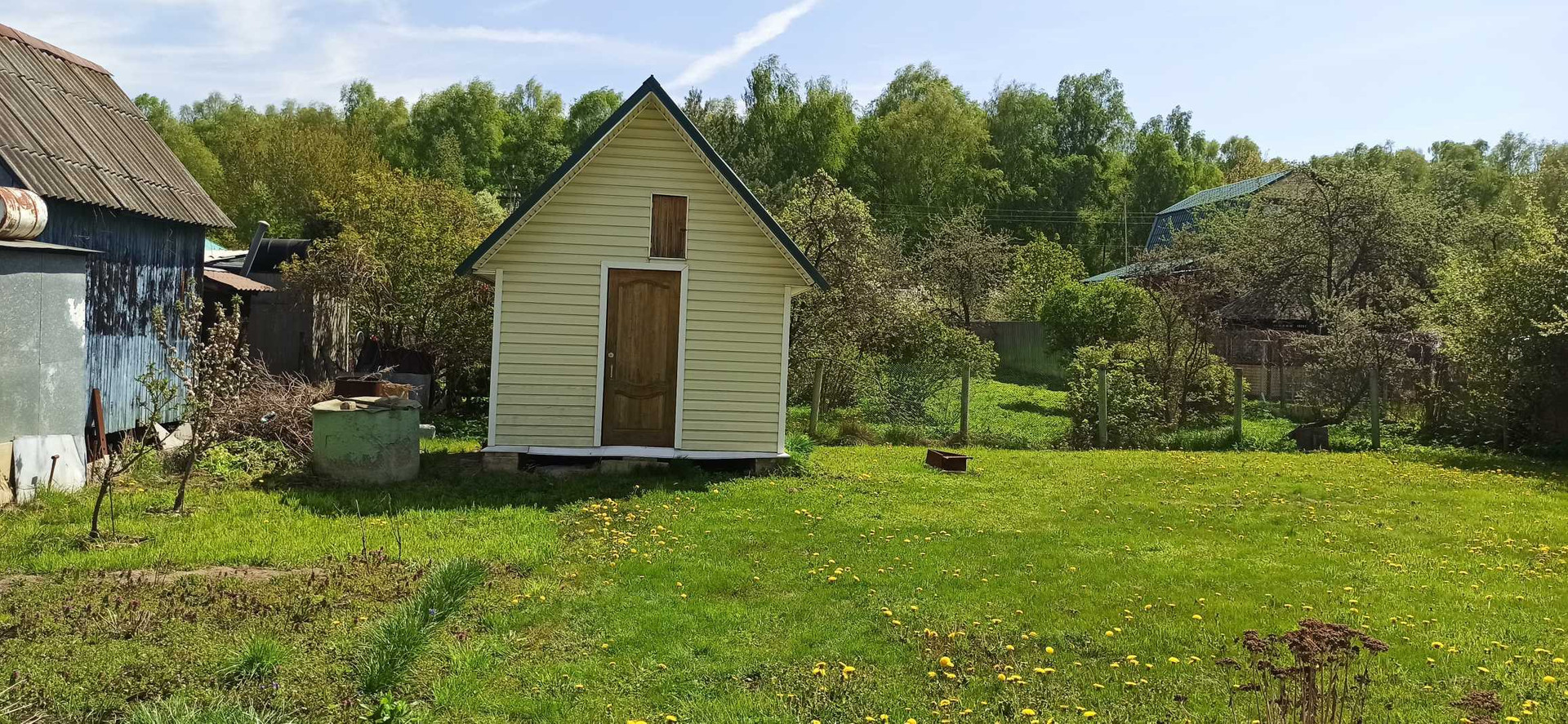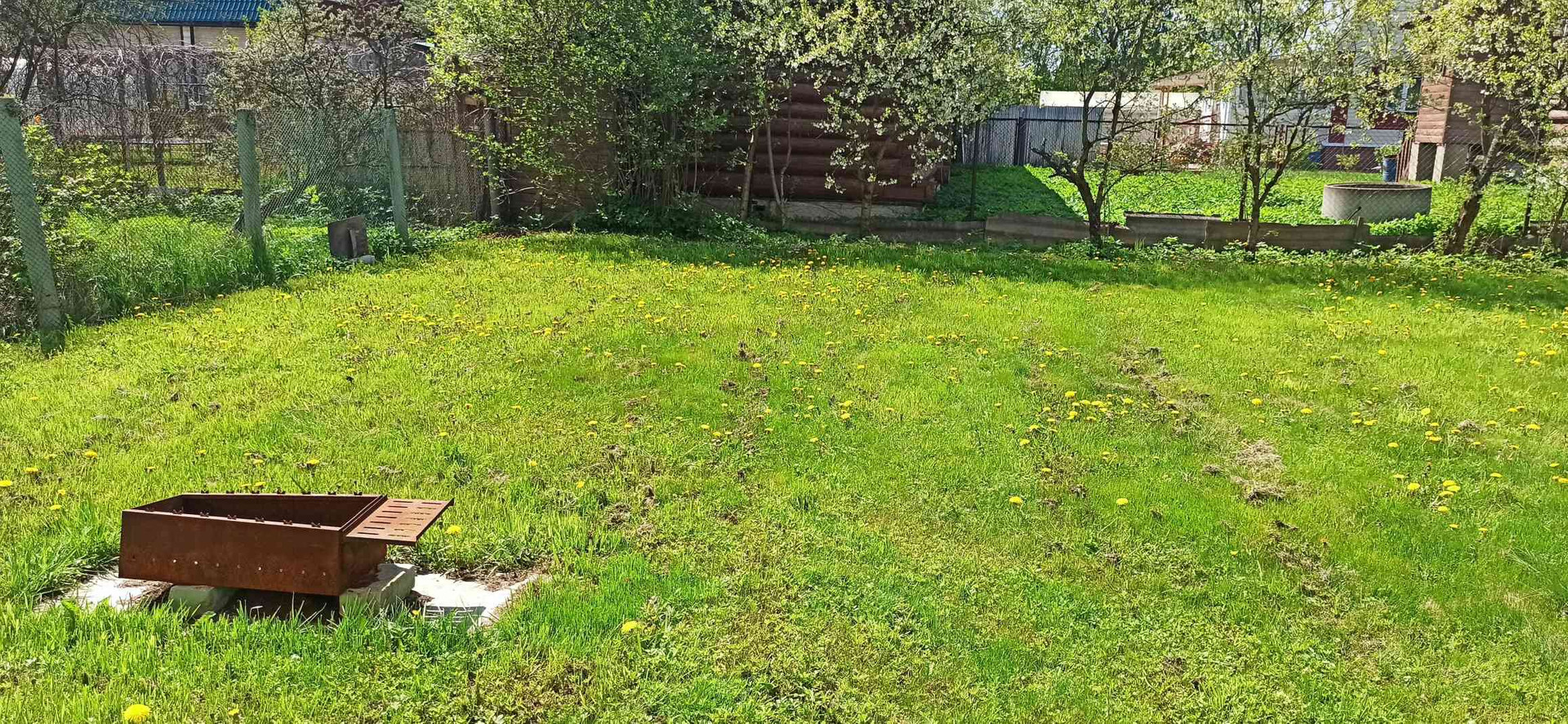 Участок ровный, сухой, ухоженный, газон, плодовые деревья , есть колодец для полива и фундамент под теплицу. Отдельно стоит хозблок с туалетом(био).
