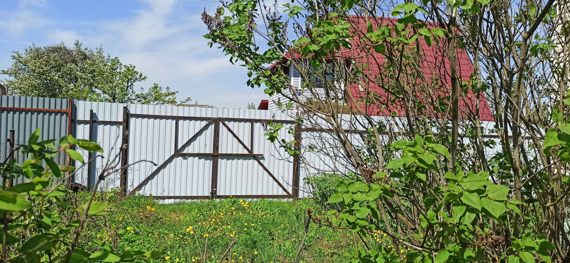 Со стороны улицы забор из металлопрофиля, предусмотрены ворота для въезда машины и площадка под стоянку.