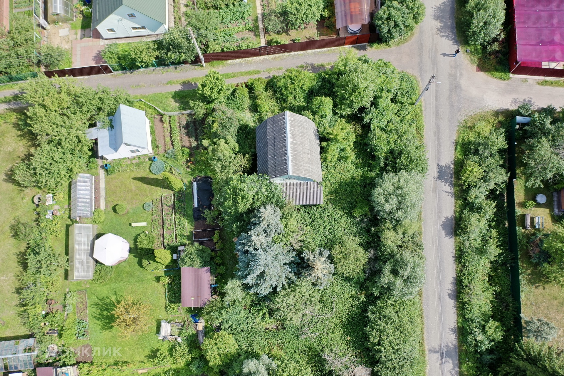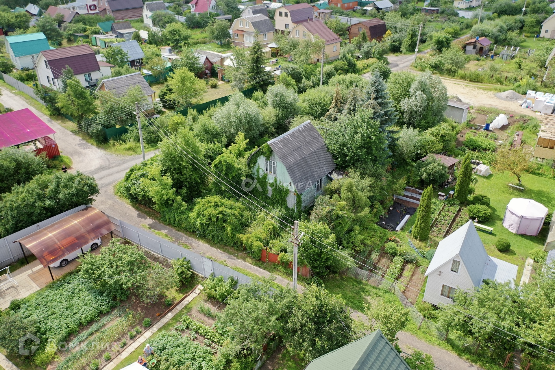 Участок 6 сот., огорожен забором с воротами и местом для машины.