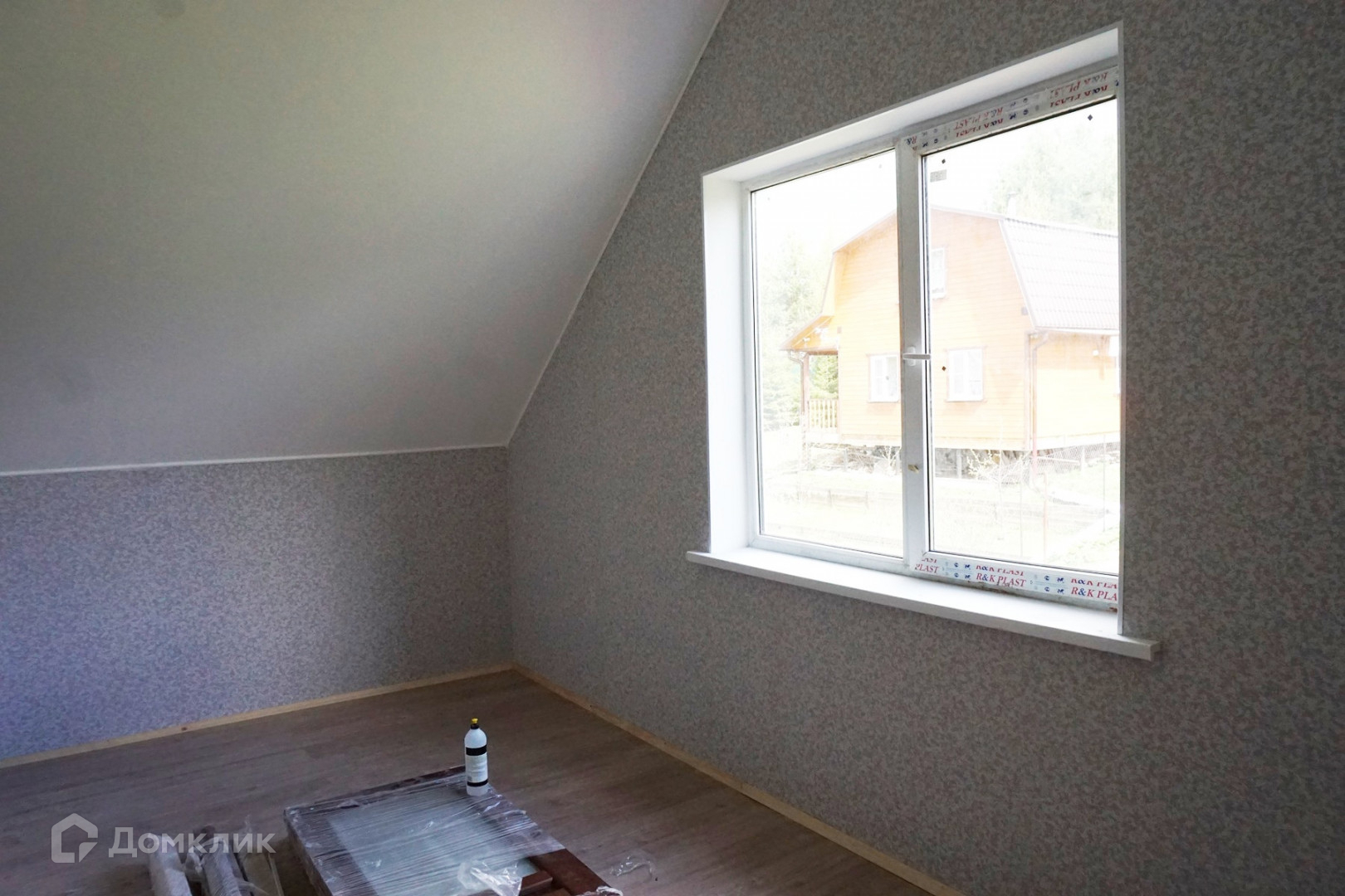 2 этаж: каркасный, 3 слоя утеплителя, гипсокартон, обои.