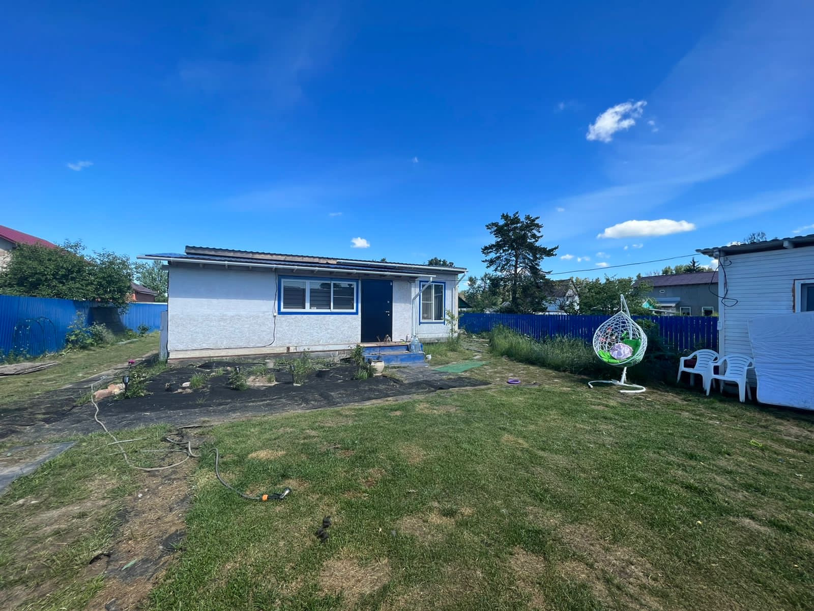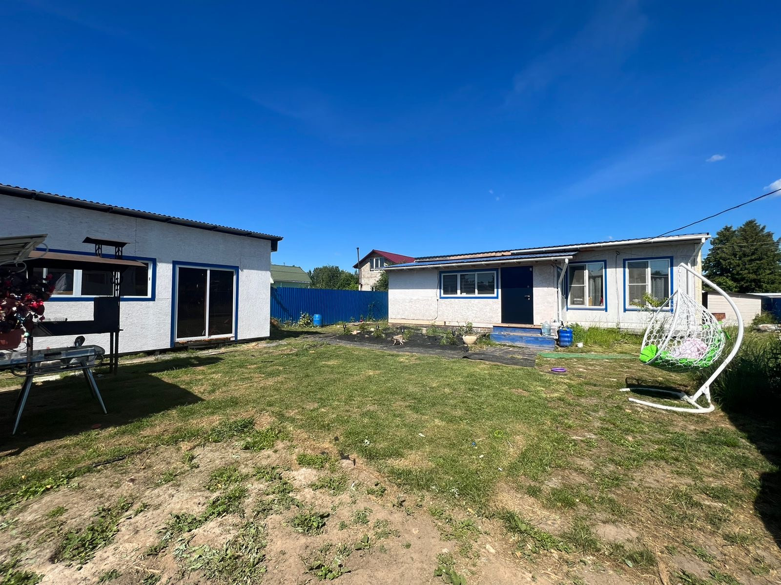 Мангал,садовые качели. На территории 2 хозблока 3*6 для хранения инструмента.