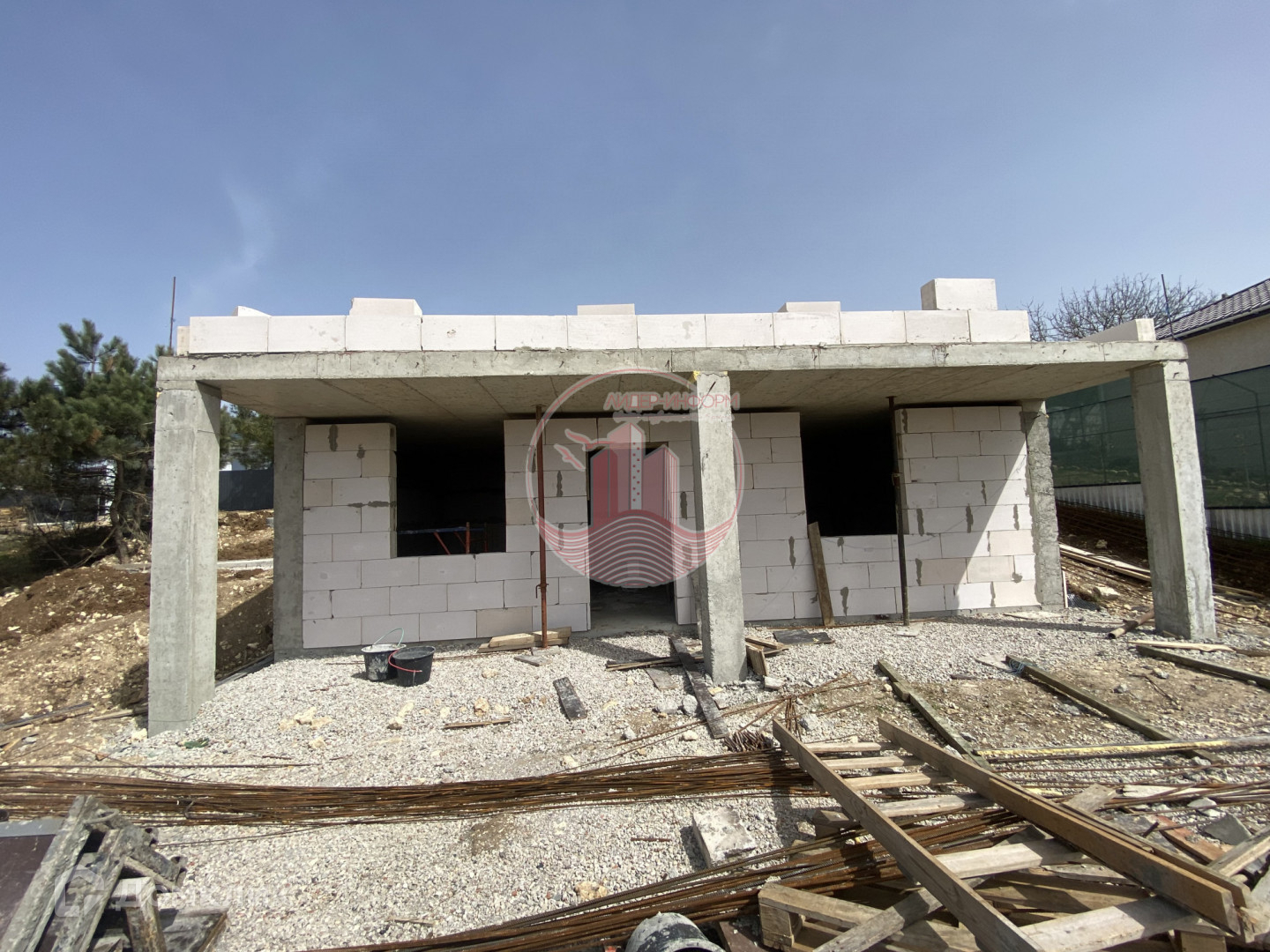 - Дом построен из газоблок, стена 200 мм, с бетонным армокаркасом ( монолит).