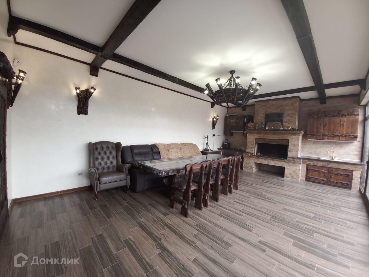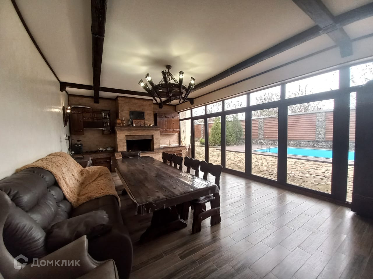 Сзади дома имеется каминный зал , который одним движением руки превращается в поднавес!