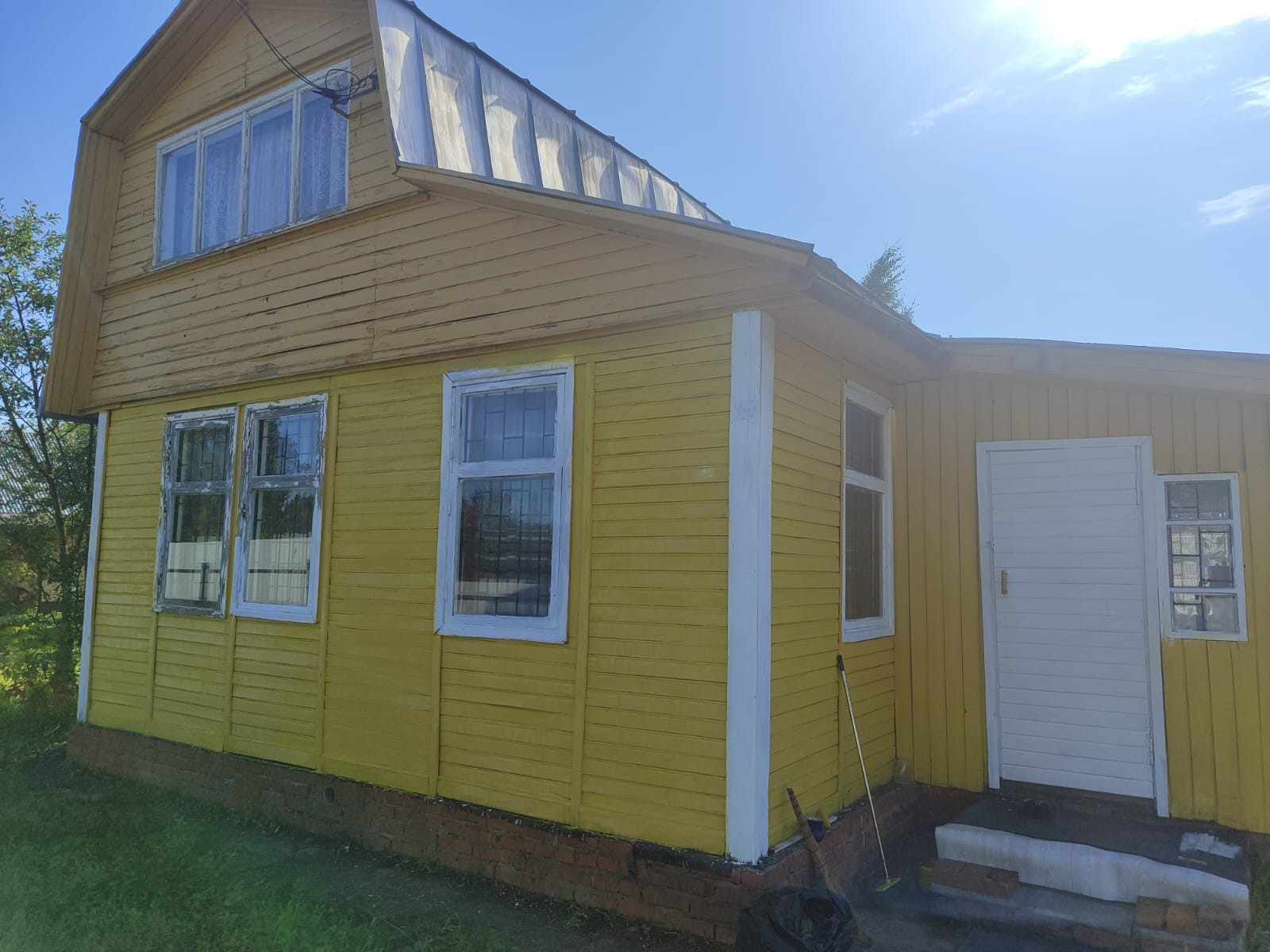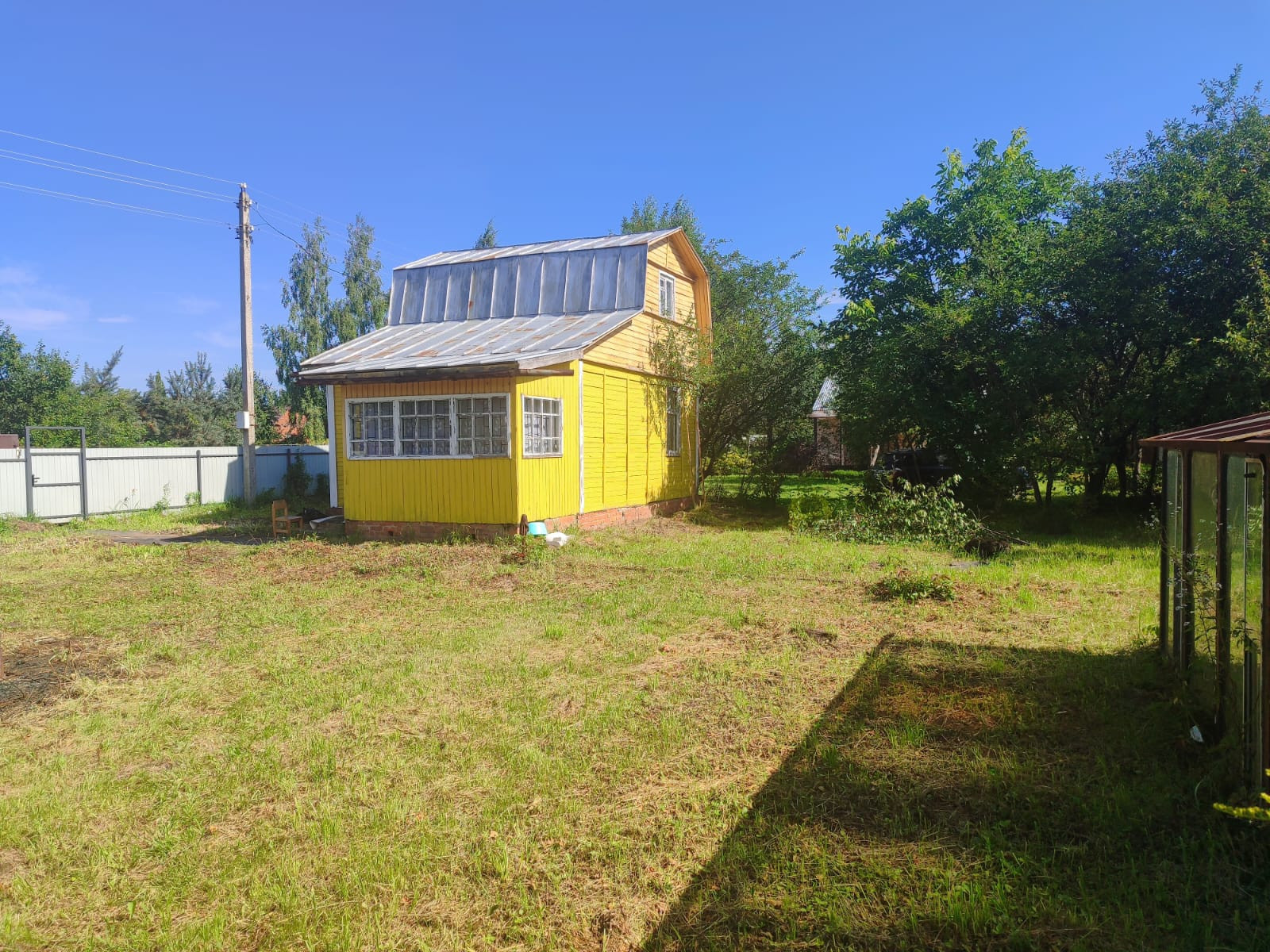 Дом , участок , два парника , фруктовые деревья.