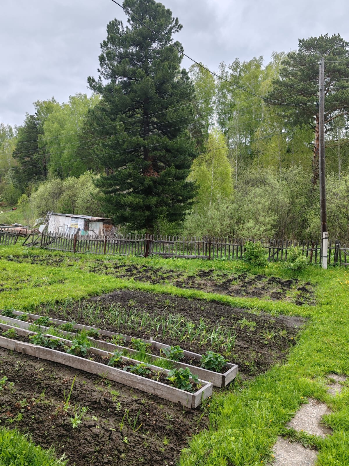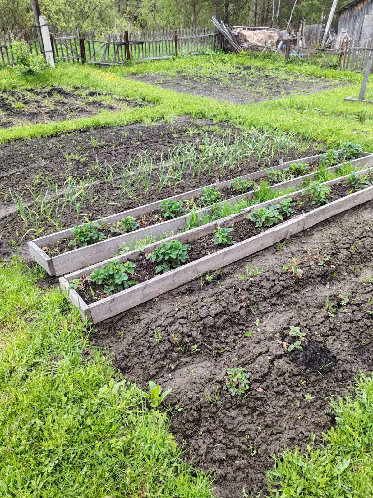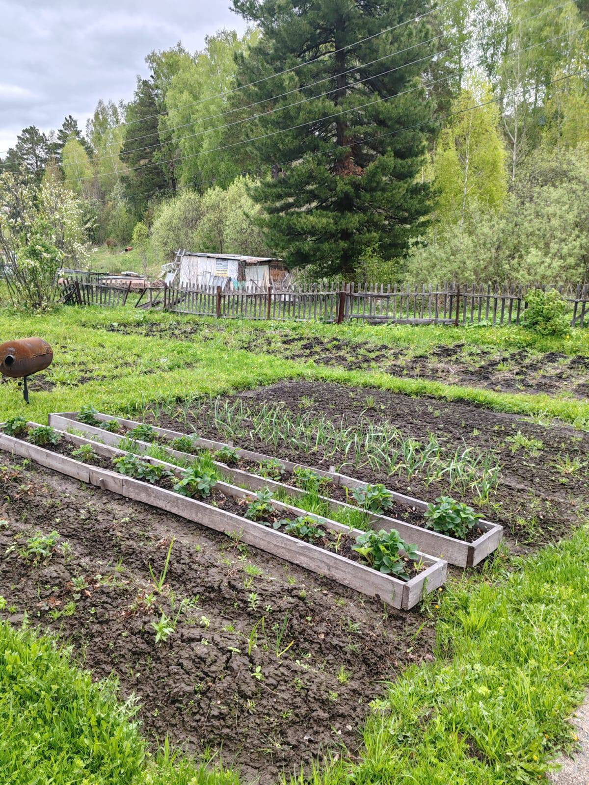Из насаждений:  яблони, смородина, крыжовник, разные сорта клубники, ирга, Бакчарская жимолость.