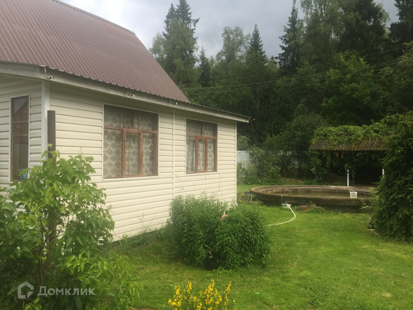 Фундамент ленточный, дом утеплён. Внутри обшит вагонкой. На входе в дом комната -терраса-кухня.(выход на две стороны).