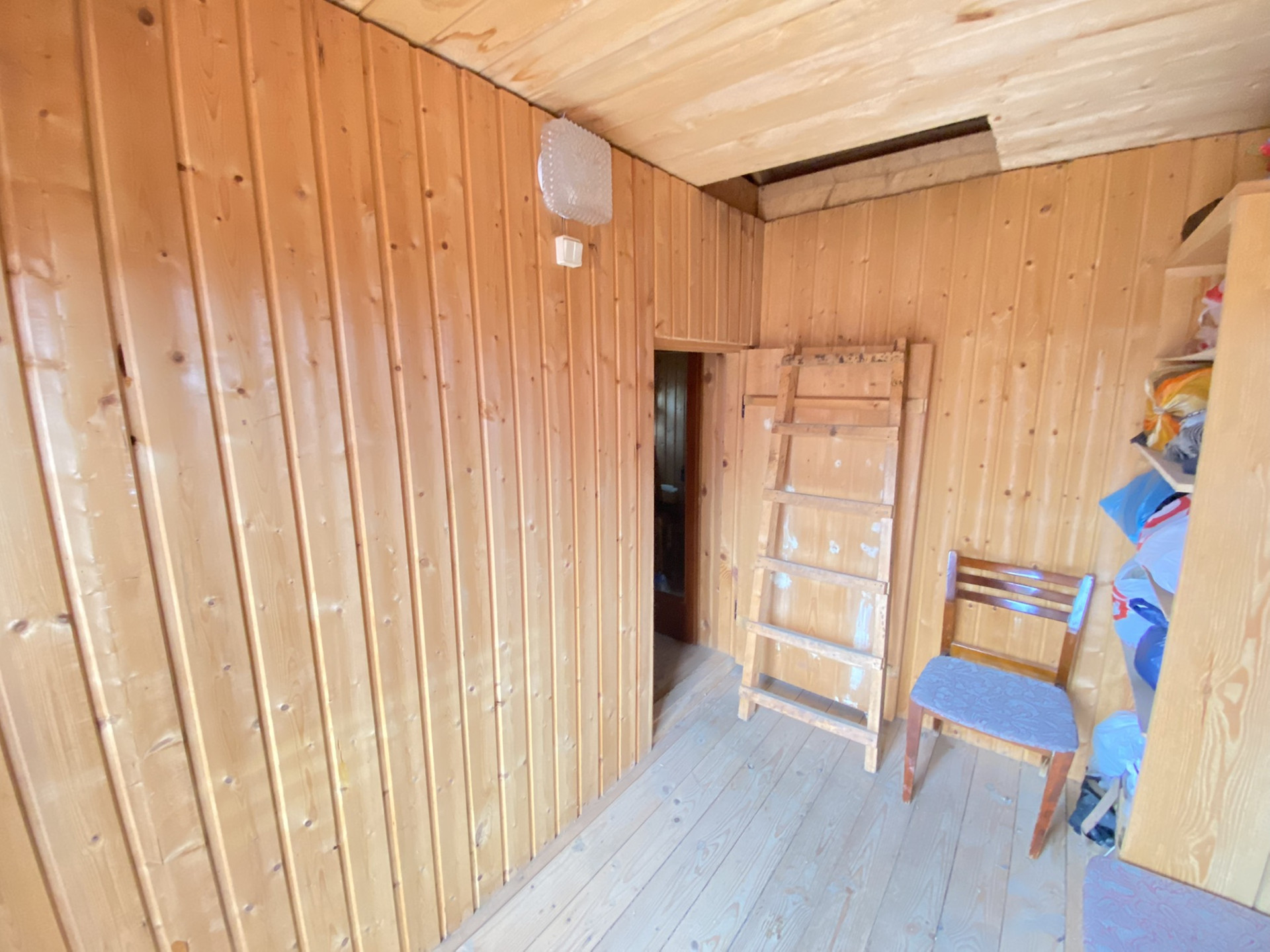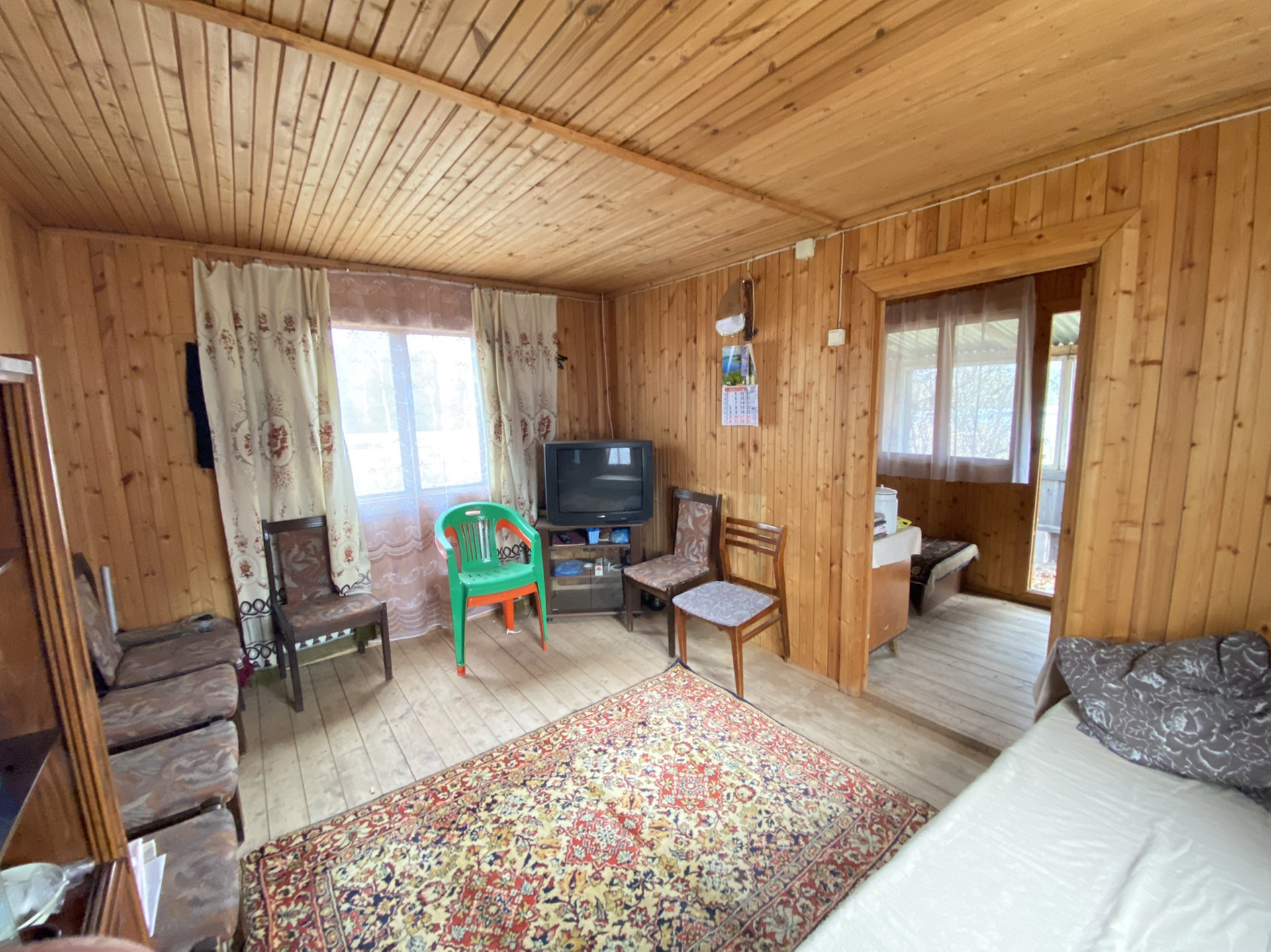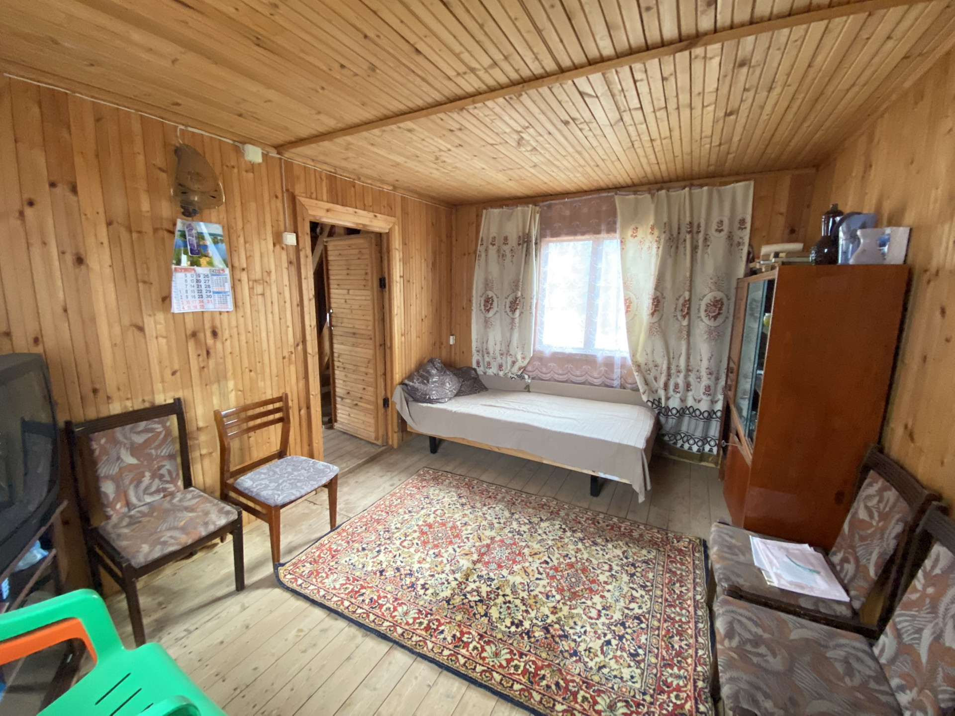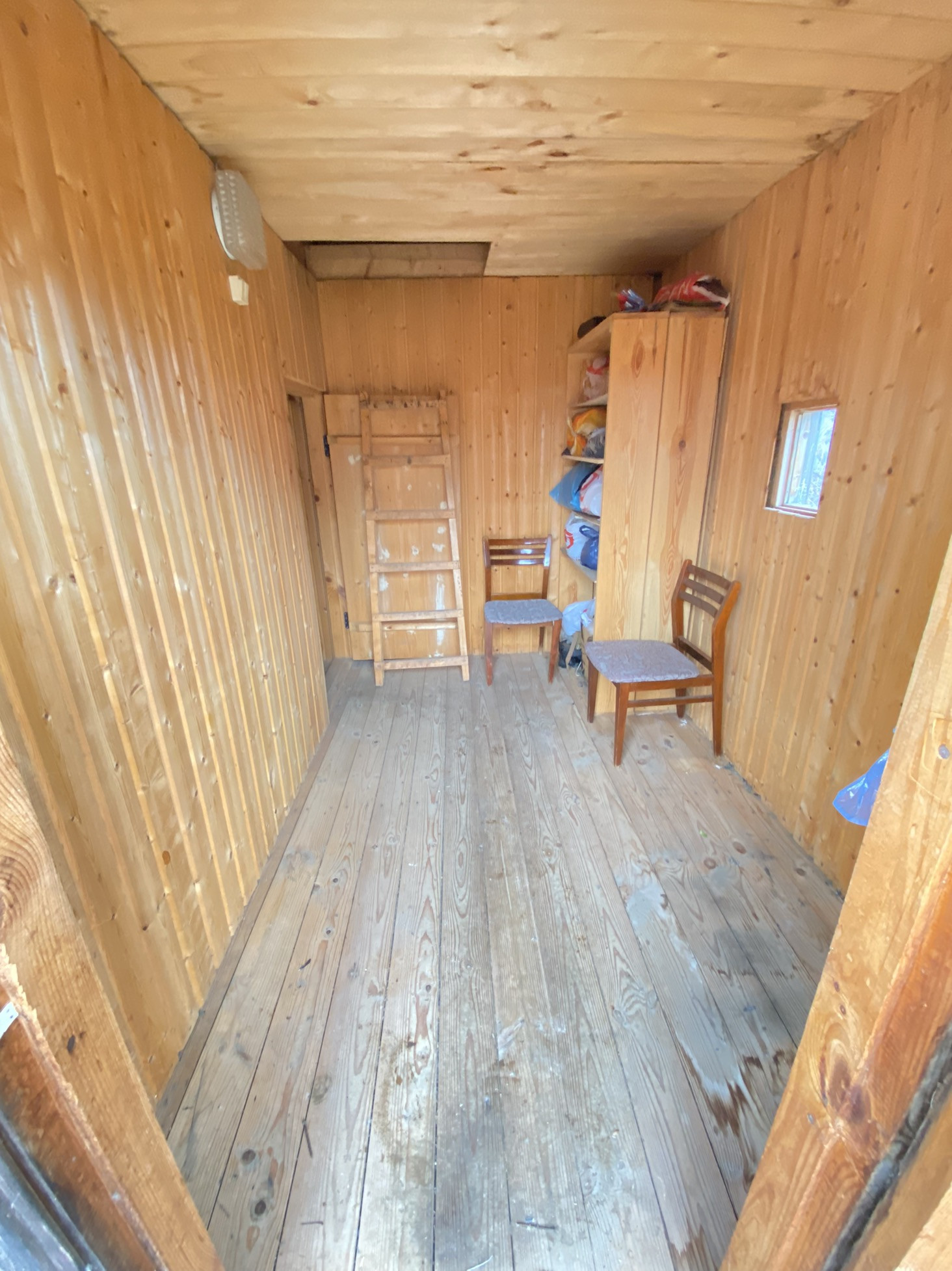 Внутри обшит вагонкой.