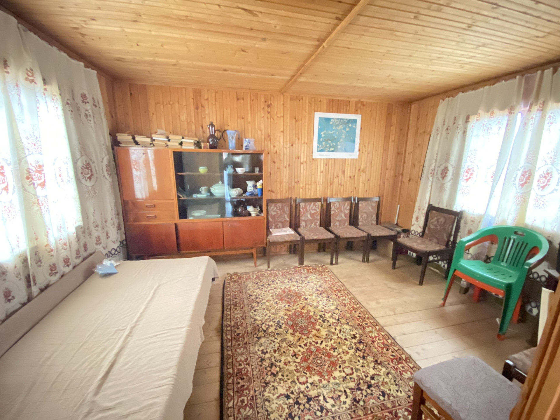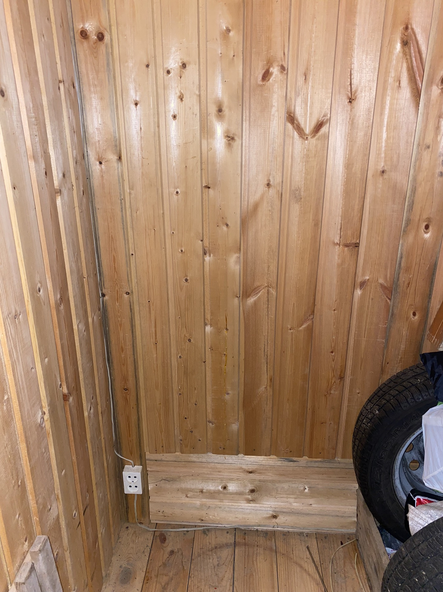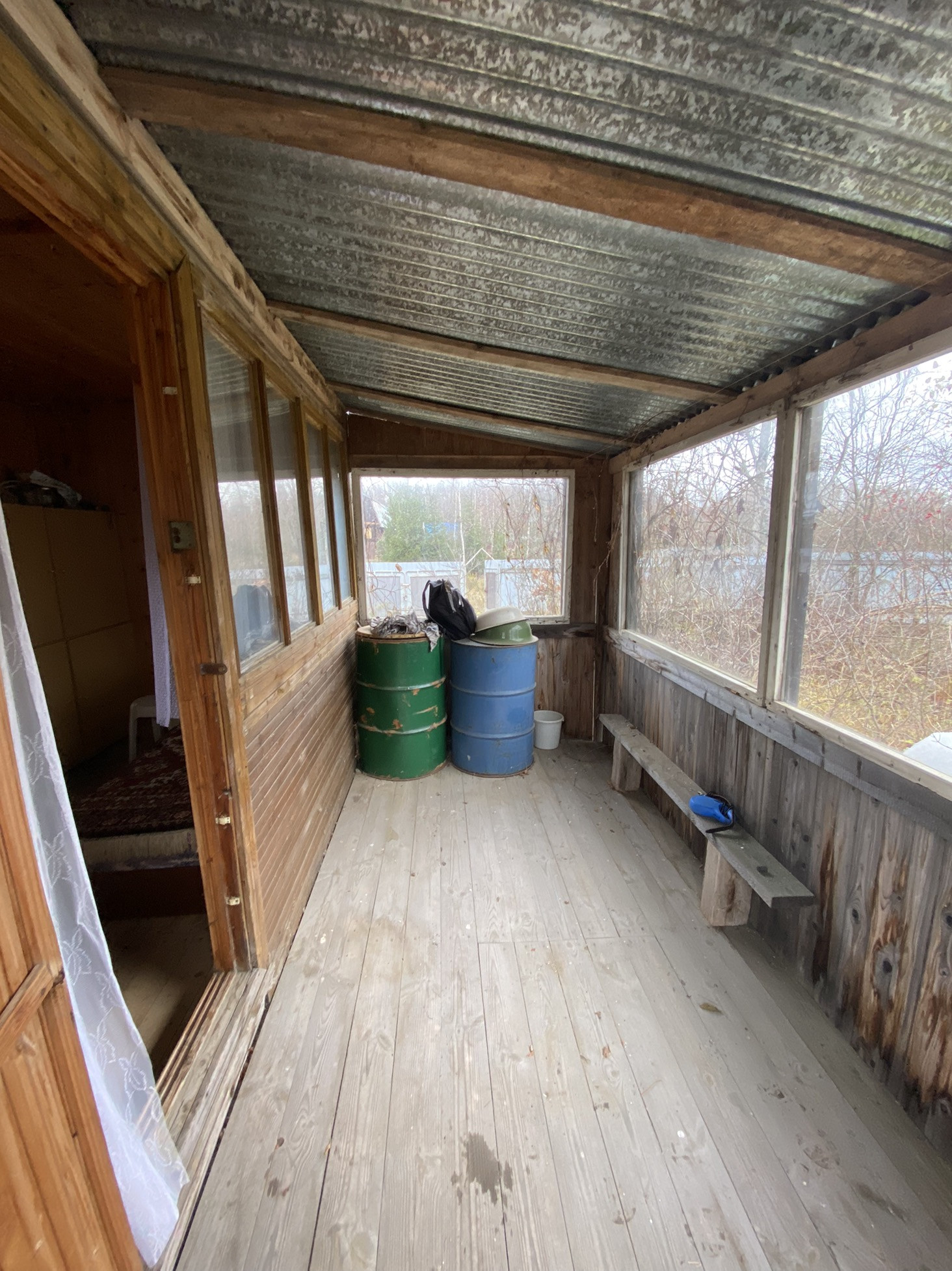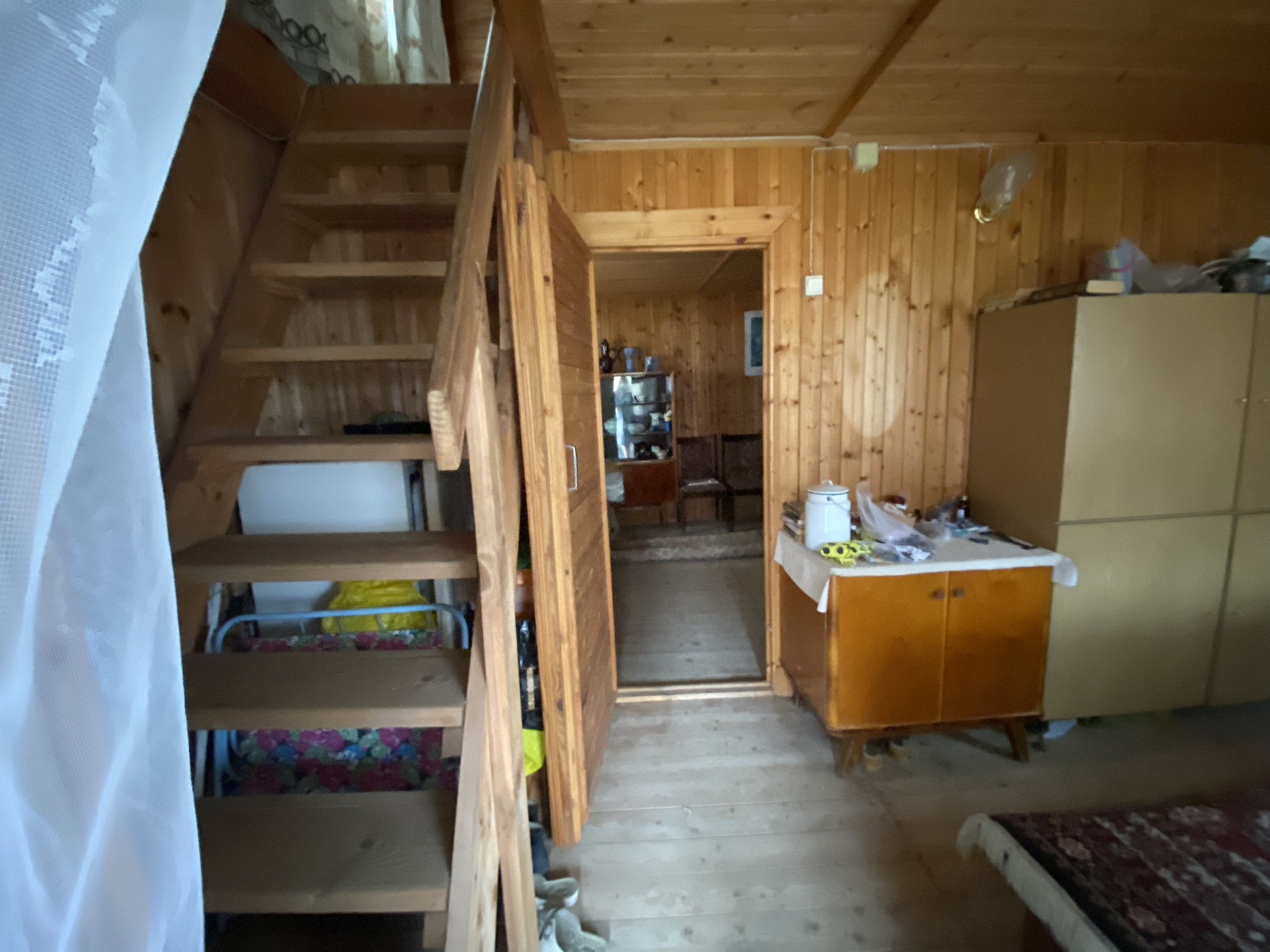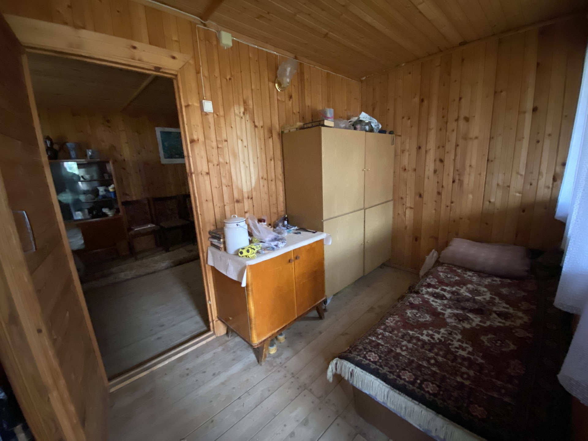 Внутри обшит вагонкой.