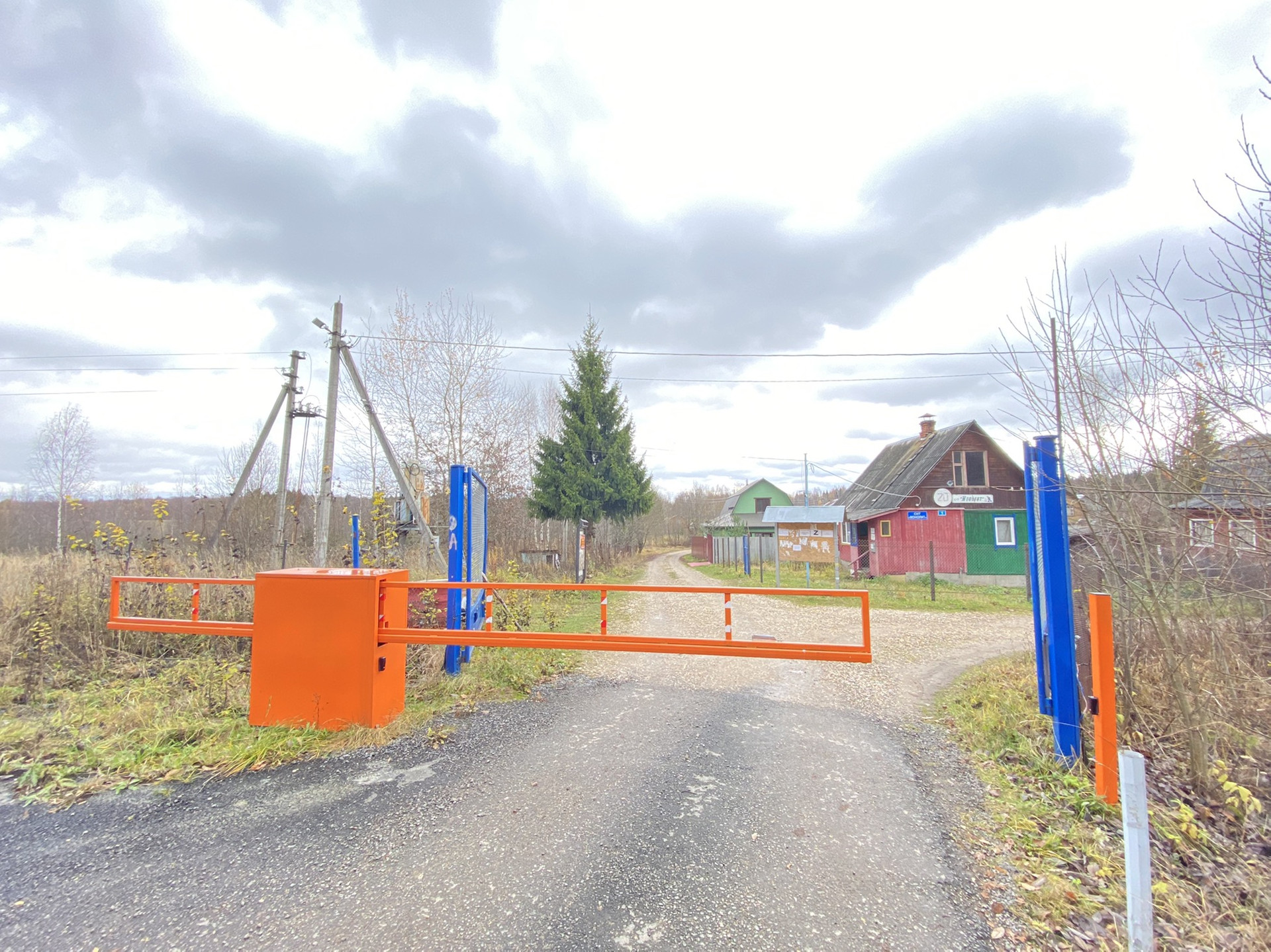 Въезд в СНТ Моголит через шлагбаум, ведётся видеонаблюдение.