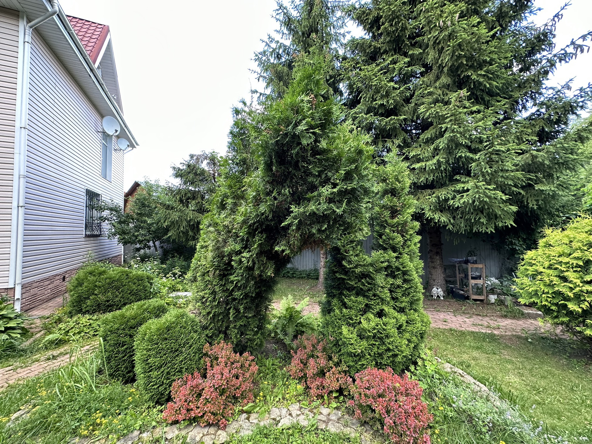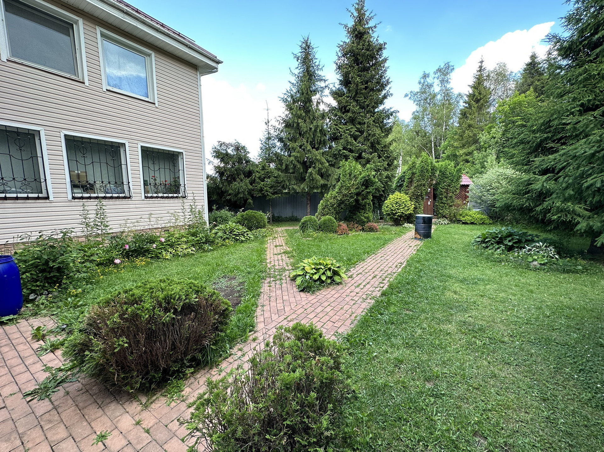 Участок очень живописный, с хвойными деревьями.  Также на участке есть дровник.