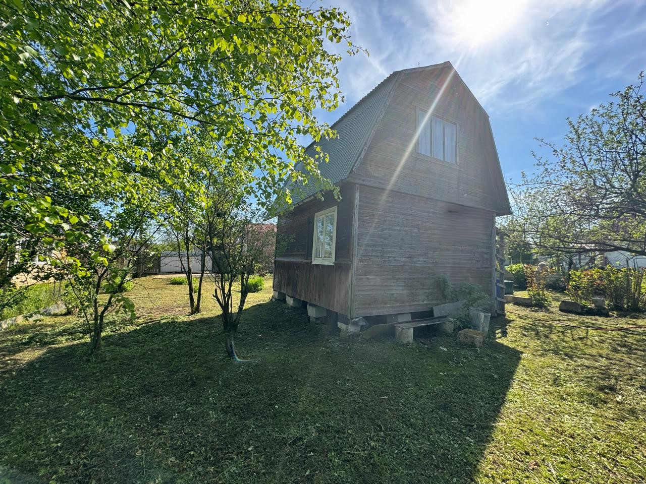 Дом оформлен как ЖИЛОЙ. Подходит для летнего проживания. Общая площадь 48 кв.м.. Фундамент блочный, дом каркасно-щитовой, окна деревянные, крыша металлическая. Электричество 6 кВт, отопление печь. На участке хозблок, туалет, летний душ, вода летний водопровод (заведен в душ) водонагреватель. Планировка дома: на первом этаже кухня и комната, на втором этаже 1 комната.