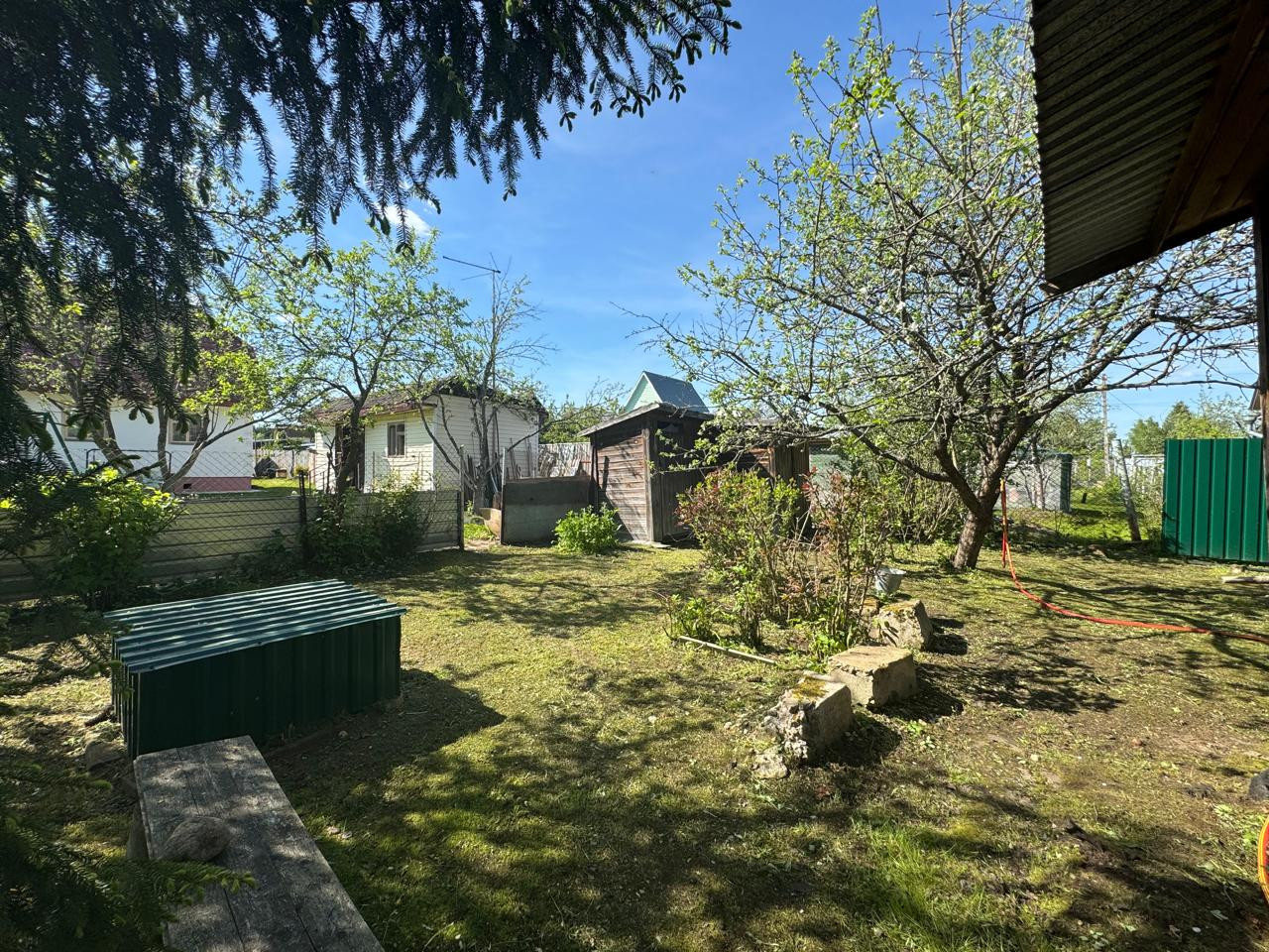 Участок: площадью 6 соток, правильной прямоугольной формы, огорожен со всех сторон ухожен. На участке выделено место под парковку. Деревья, кустарники. СНТ оборудовано въездной группой. В шаговой доступности остановка общественного транспорта, магазин продуктов, магазины стройматериалов.