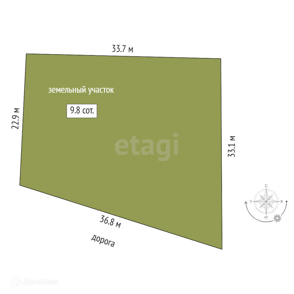 Площадь участка 9.8 сот.