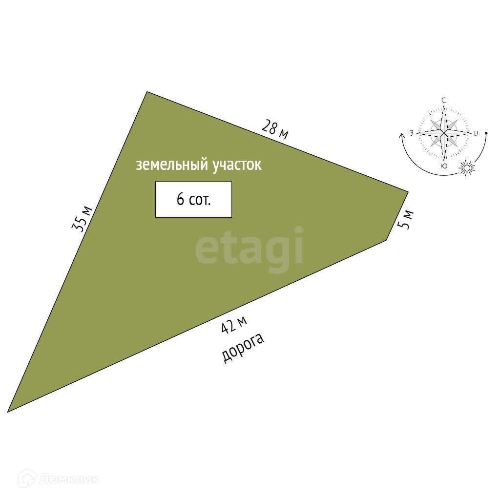 Предлагаем приобрести земельный участок 6 соток, ровный, неправильной формы,угловой.