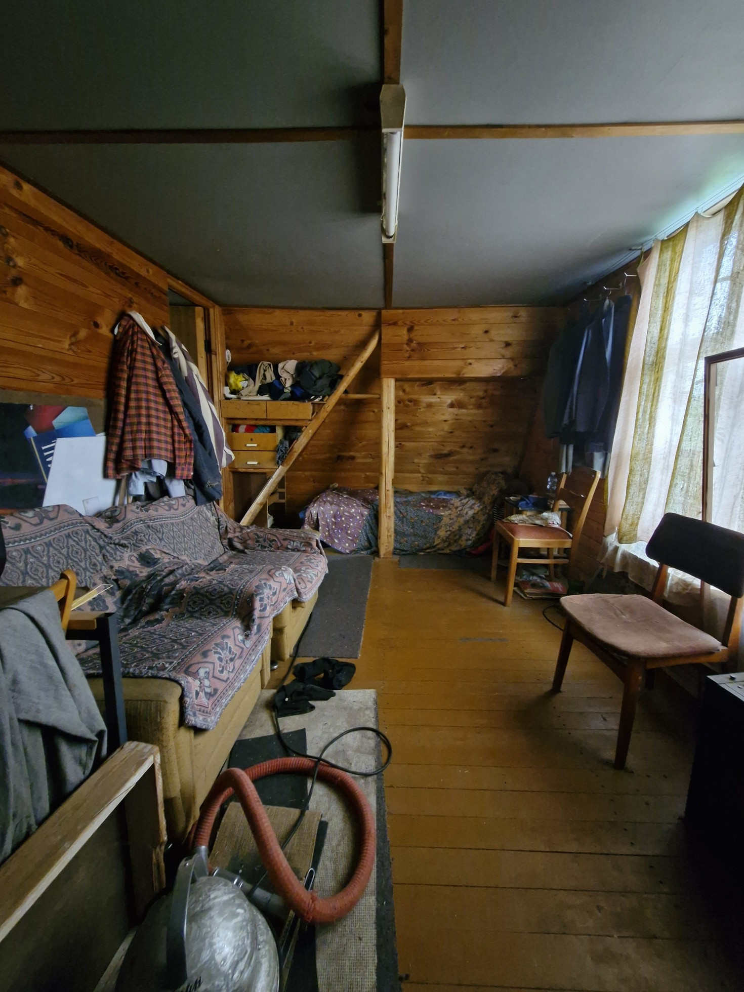 В доме на первом этаже крытая терраса-кухня и огромная комната, на втором этаже две большие комнаты.