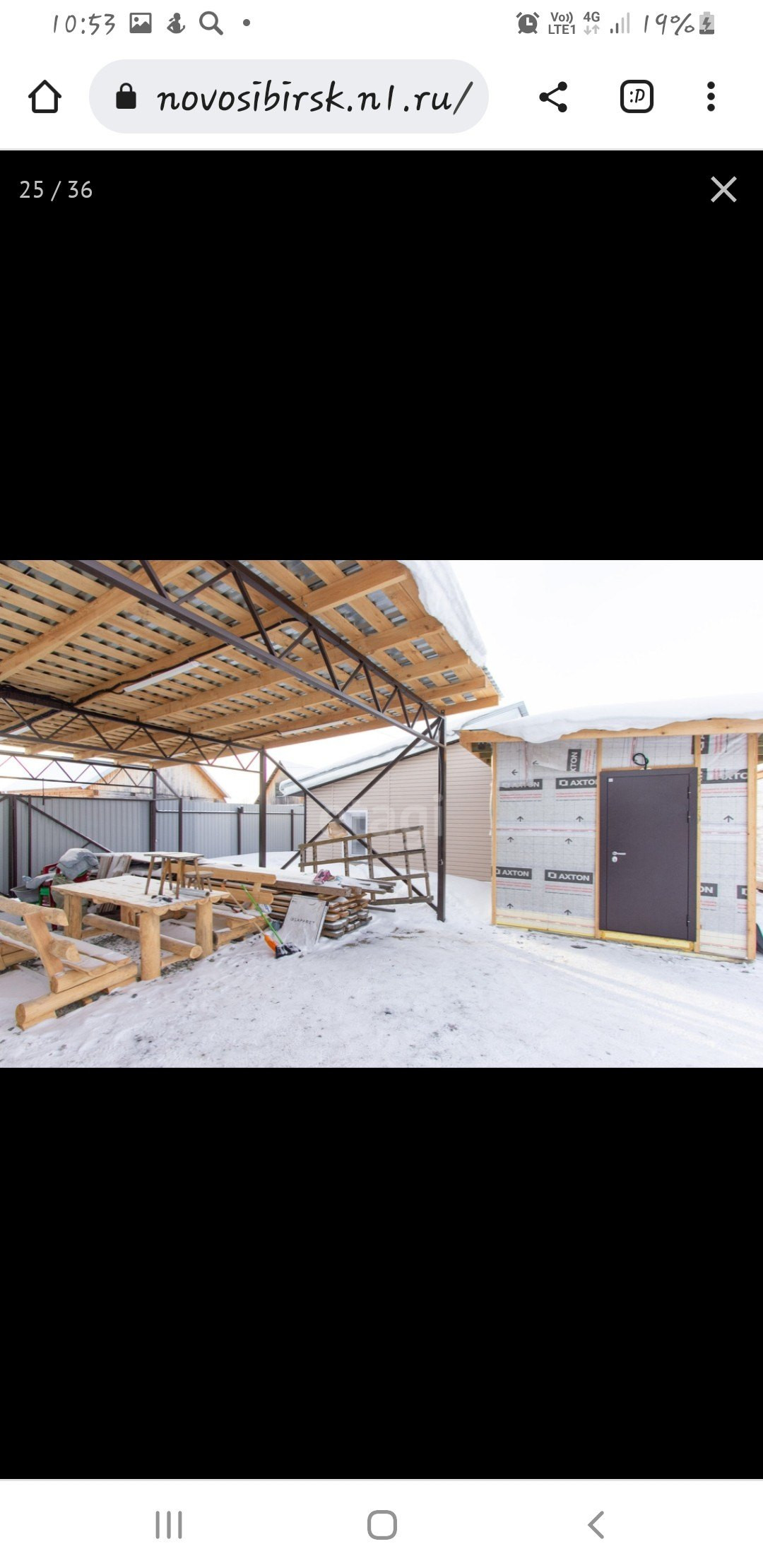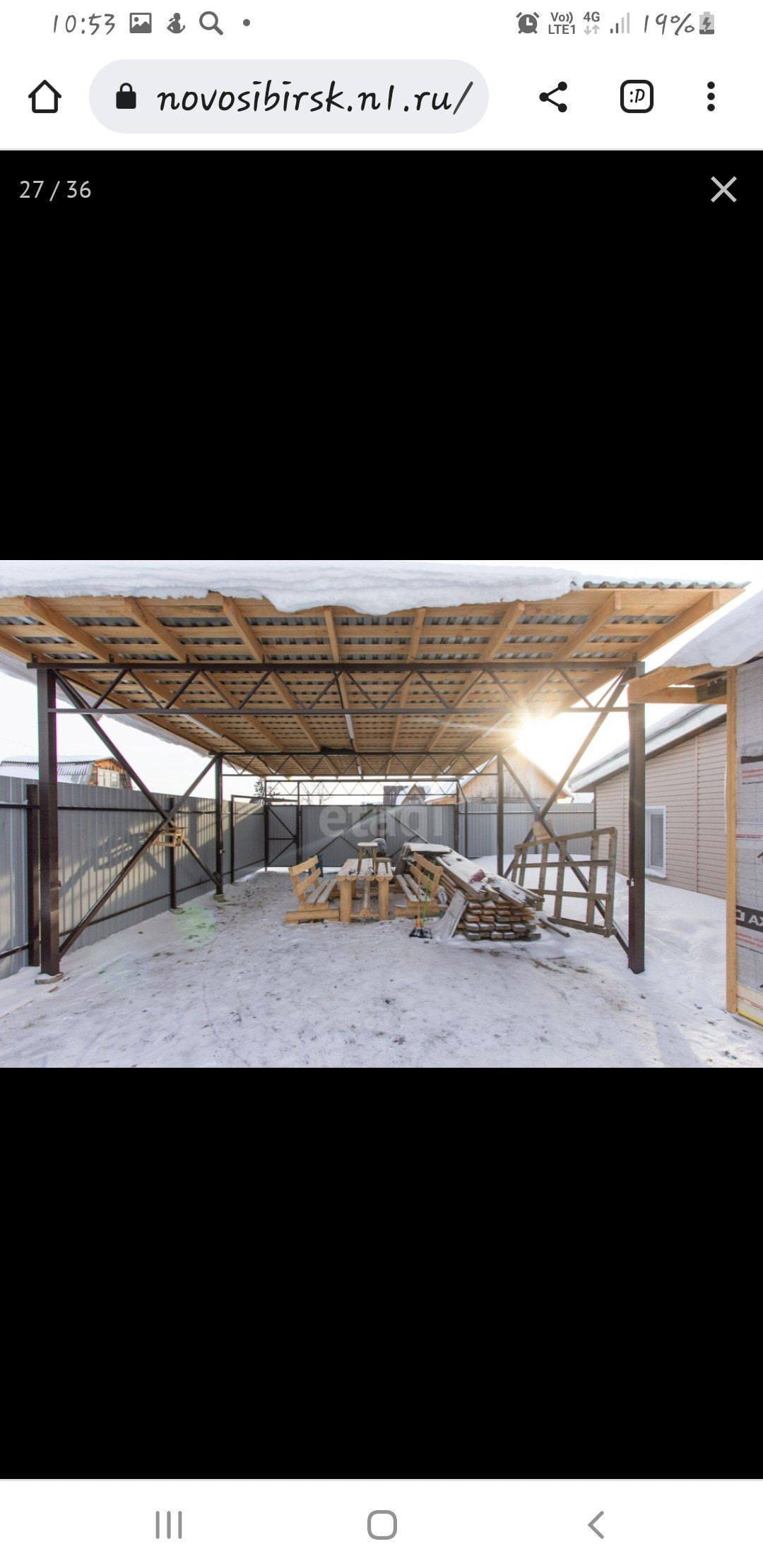 Во дворе монументальный навес который спасёт от дождя и снега.