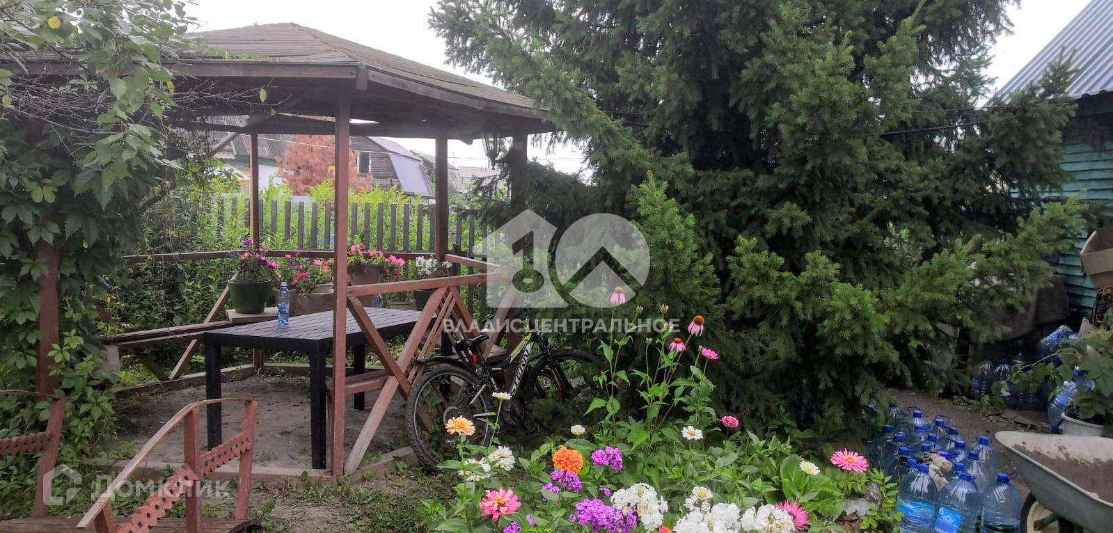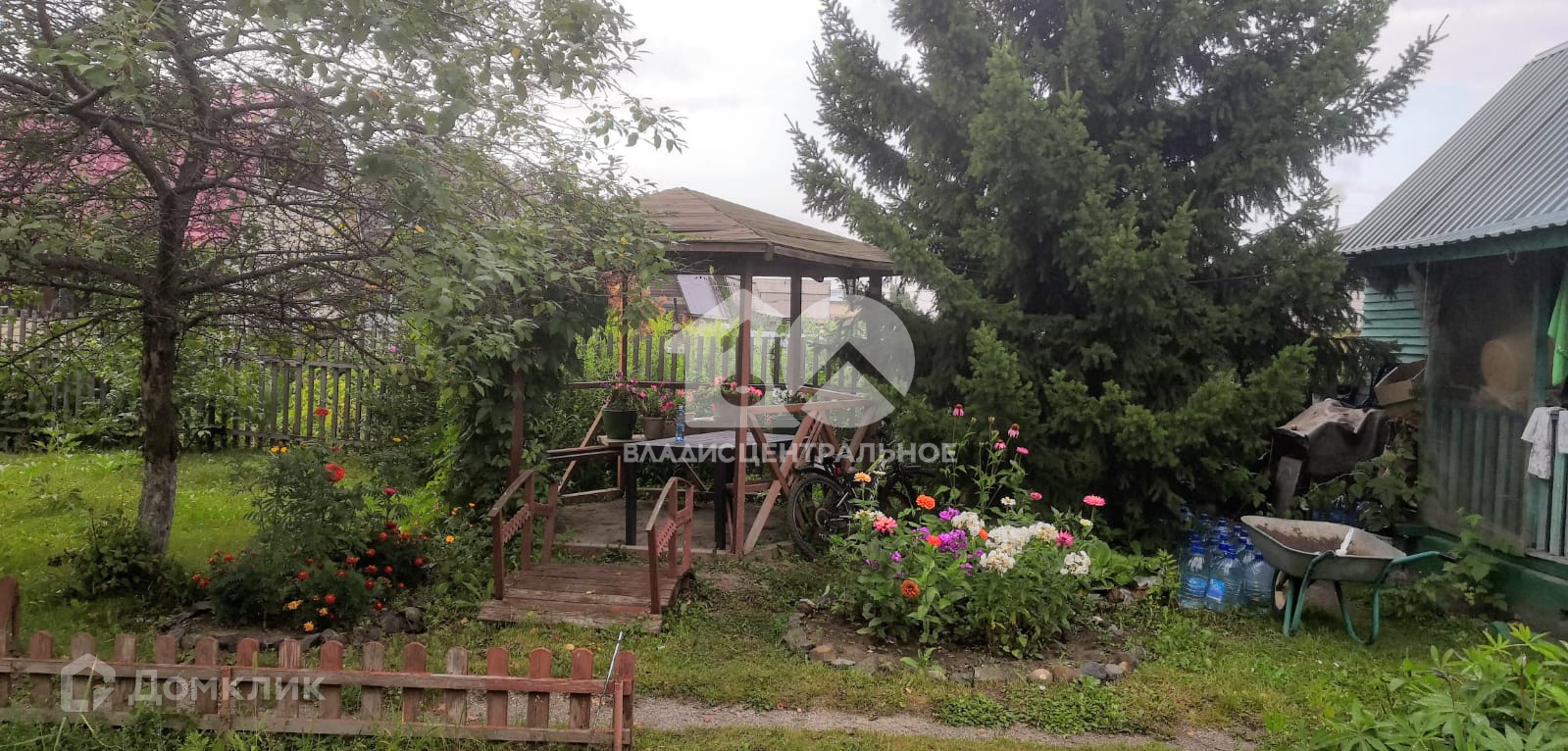 Между домом и баней есть уютная летняя беседка.