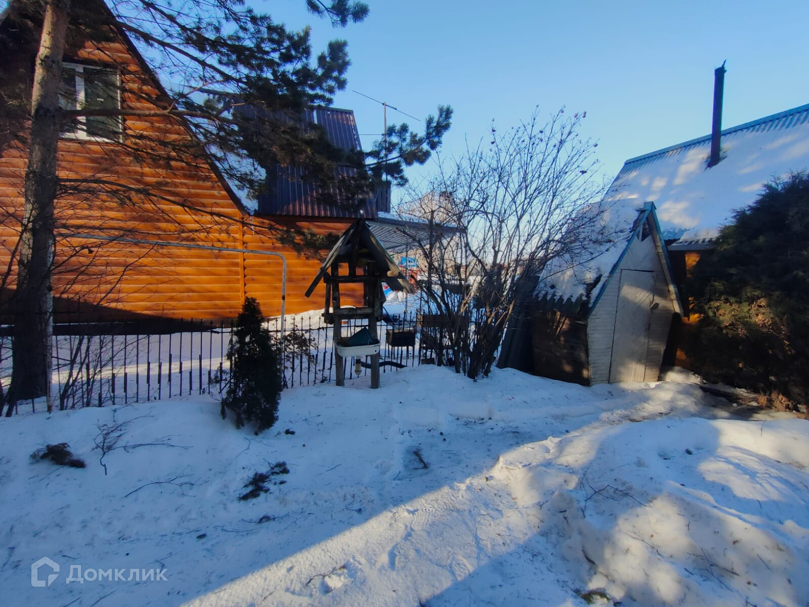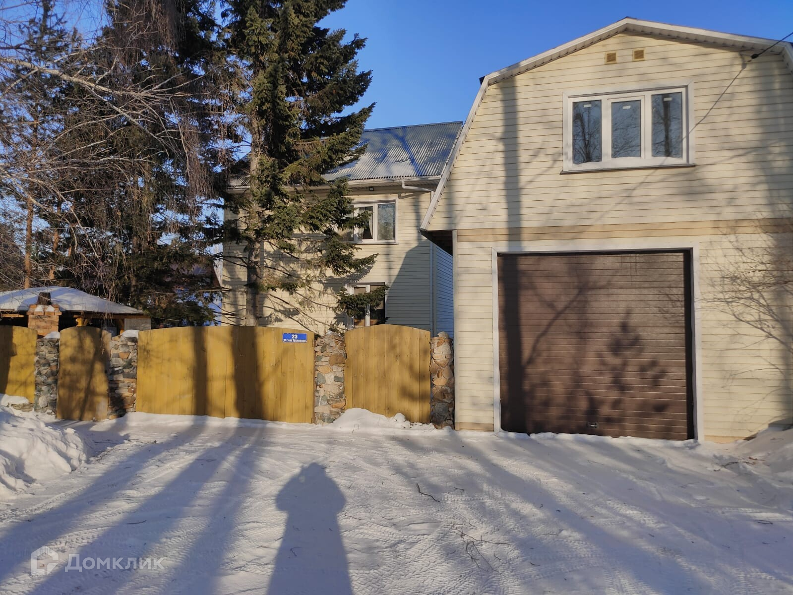 Участок 8 соток, на нем органично вписаны дом, баня, гараж, беседка с печью. Вокруг вековые сосны защищают летом от палящего солнца, а зимой от ледяного ветра