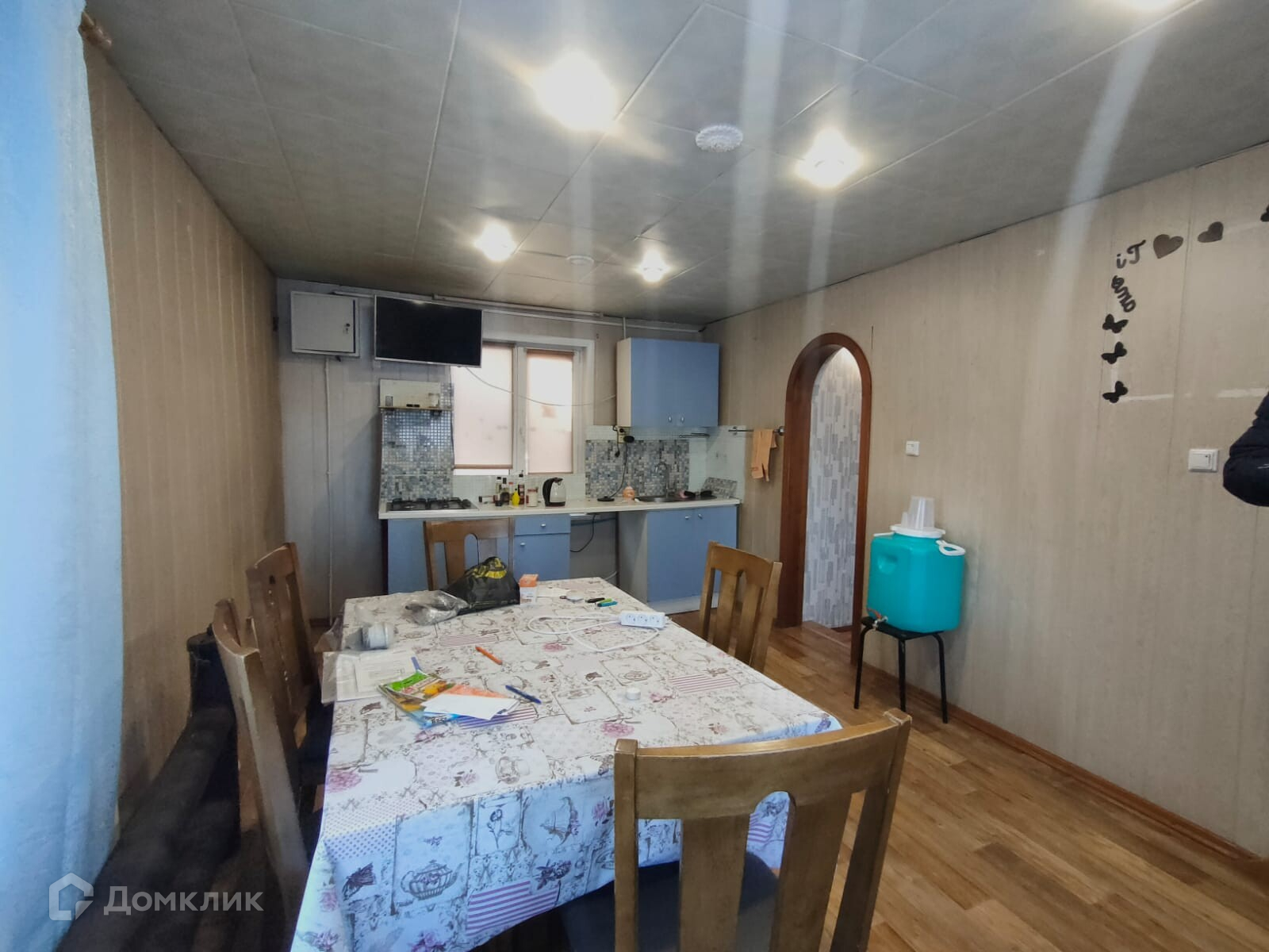 Дом из сибита, окна пластиковые. На первом этаже прихожая с погребом, туалет, душ, кухня-гостиная, лестница на второй этаж. В кухне плита газовая. На втором этаже две спальни и общий санузел, коридор и выход на просторный балкон. На третьем этаже 20 кв.м. свободного назначения. Отопление - электрокотел, но в цоколе (вход отдельный с улицы) есть дровяная печь, можно топить углем и дровами. Скважина своя. Канализация автономная септик