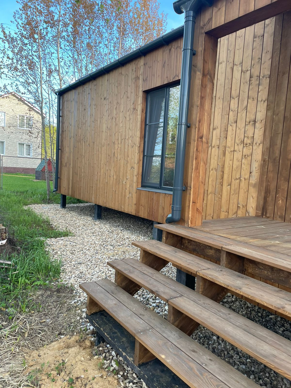 Продам "Барнхаус" 135 кв.м. на участке 8 соток в особо-охраняемой природной зоне. Дом для круглогодичного проживания, построен по каркасной технологии, каркас-усиленный, окна - тройной стеклопакет, остекление витрины-двойной стеклопакет, тонировка на стеклах, утепление 200 мм. стены, крыша, пол. Три спальни, два санузла, прихожая, техническая комната, кухня гостинная. Эскизный проект планировки, вышлю по запросу. Жилая площадь 100 кв.м., терассы -35 кв.м. На участке электричество 7 кв. , колодец, бытовка. Дом аккуратно построили среди деревьев, много места для зоны отдыха, хоз.построек, парковки. В дом требуется подведение коммуникаций, внутренняя отделка.