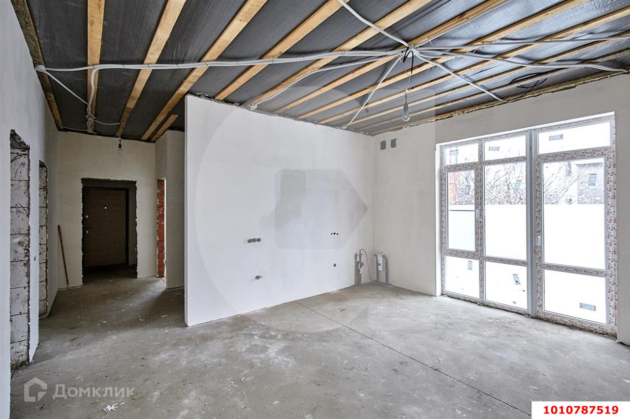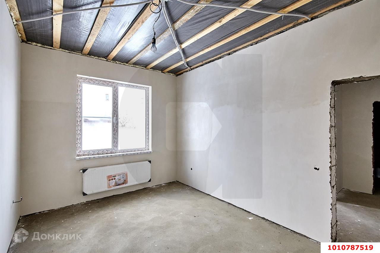 В продаже отличный дом. Самая удобная планировка с тремя изолированными комнатами и кухня-гостиная с выходном на задний двор. Выполнена качественная предчистовая отделка, теплые полы, разводка электричества и радиаторы. Также установлен двухконтурный котел. Дом очень удачно расположен на земельном участке в 4 сотки земли. Есть возможность разбить сад и поставить беседку, баню, зону BBQ.  2 Школы находятся в 10 минутах езды, есть школьный подвоз.  Рассмотрим все предложения. Документы готовы к продаже. Код объекта: 1010787519.