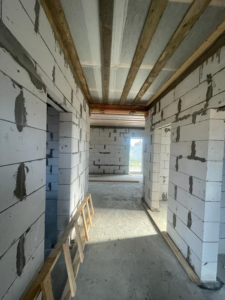 Неподтопляемый ровный участок, 2 входа, 3 комнаты, кухня совмещённая с гостинной 32 кв.м. с выходом на участок. Холодное водоснабжение из скважины, есть возможность подключения к водопроводу. Канализация в септик. Стены газоблок.