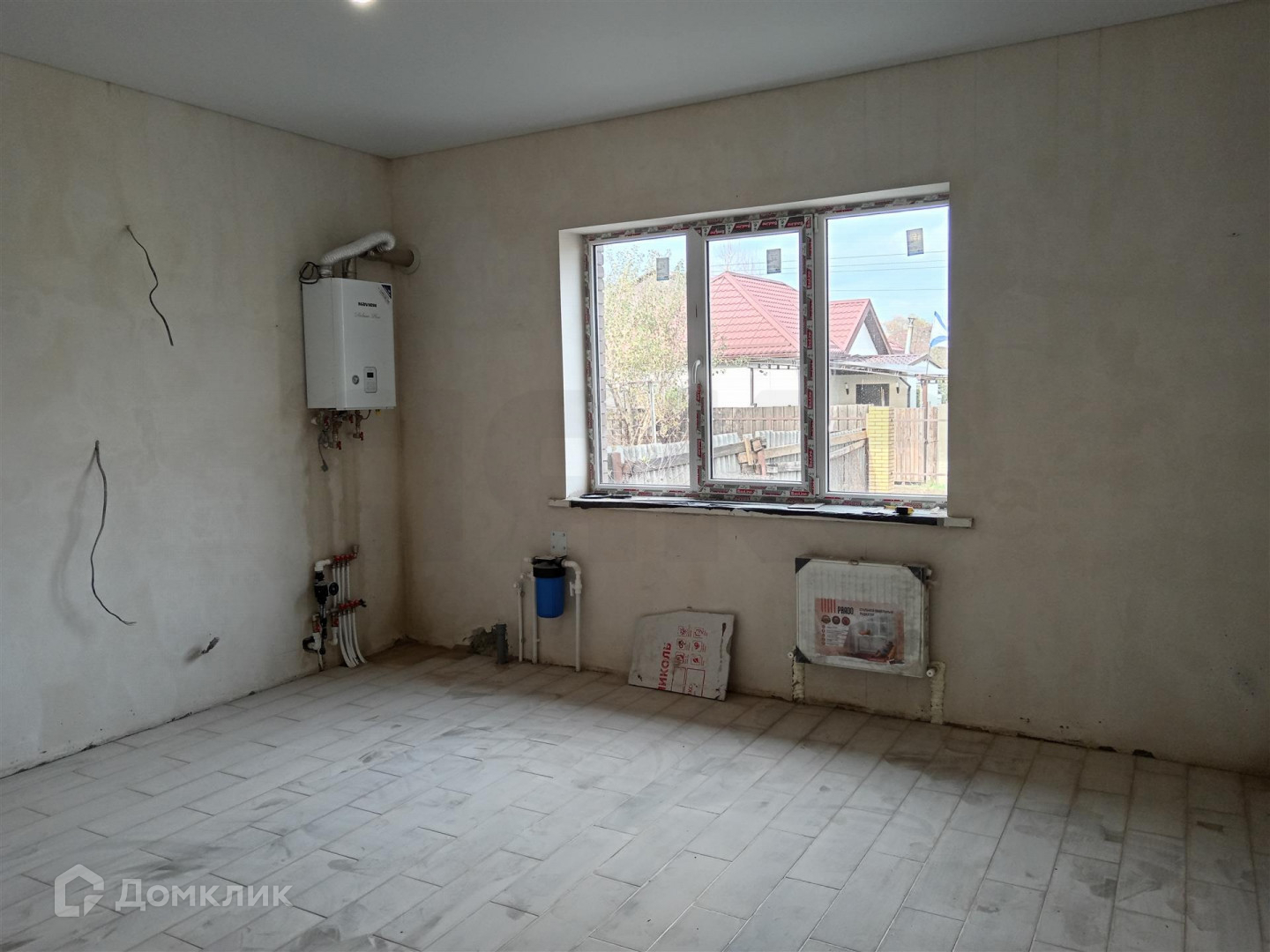 Дом расположен в глубине участка,имеет две комнаты и просторную кухню гостиную,перед домом есть возможность поставить навес большой площади.